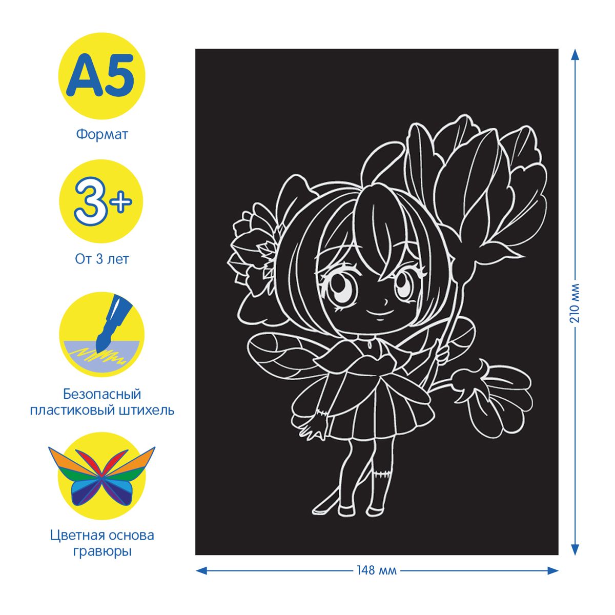 Гравюра Мульти-Пульти "Феи", А5, разноцветная основа, пакет с европодвесом