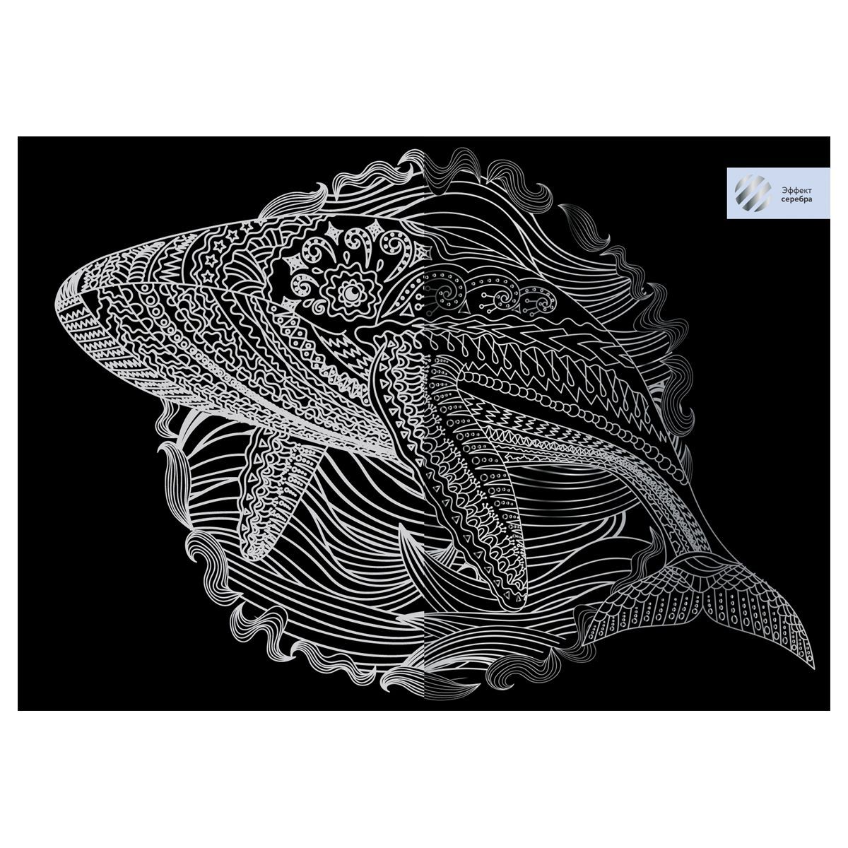 Гравюра с эффектом серебра ТРИ СОВЫ "Кит. Антистресс", А4