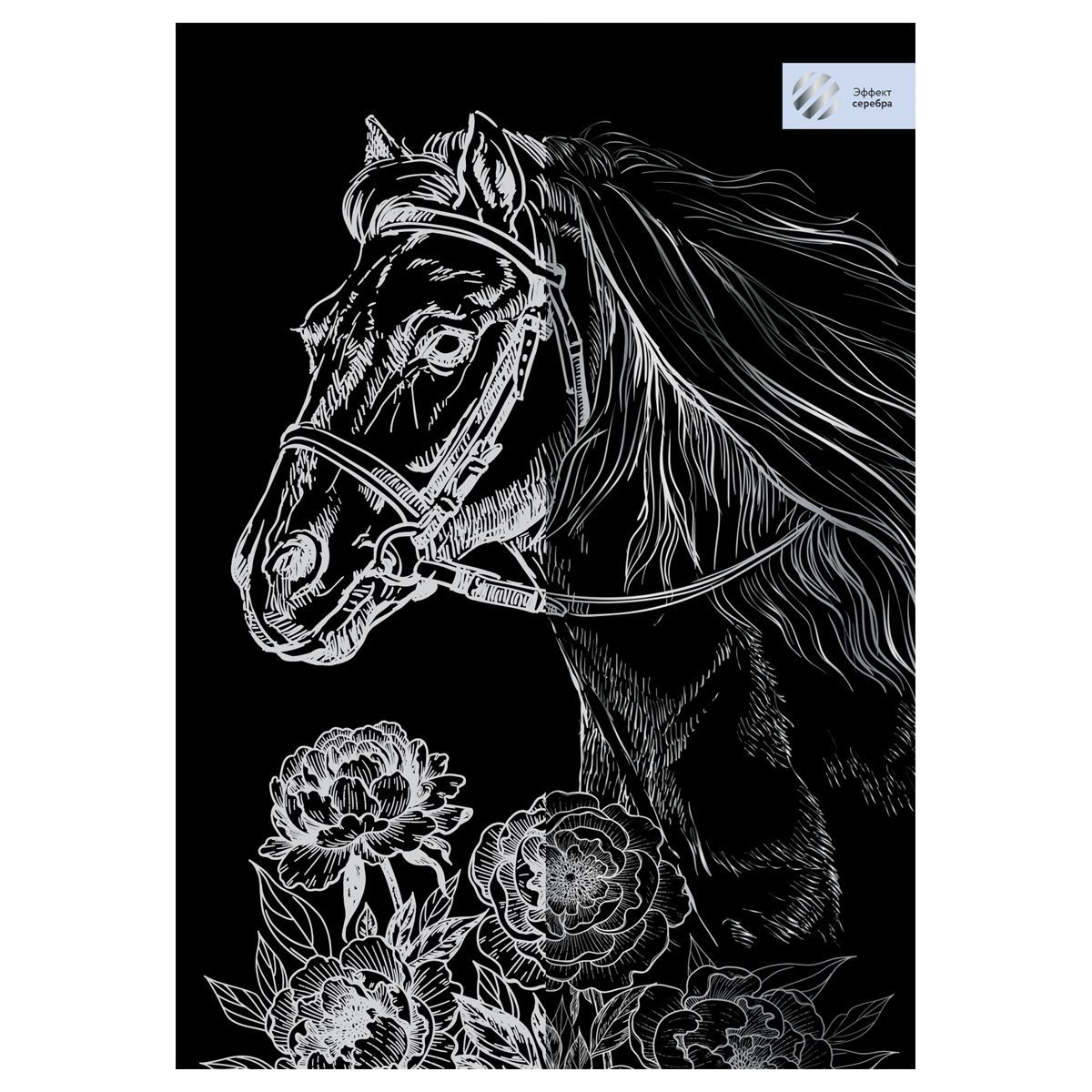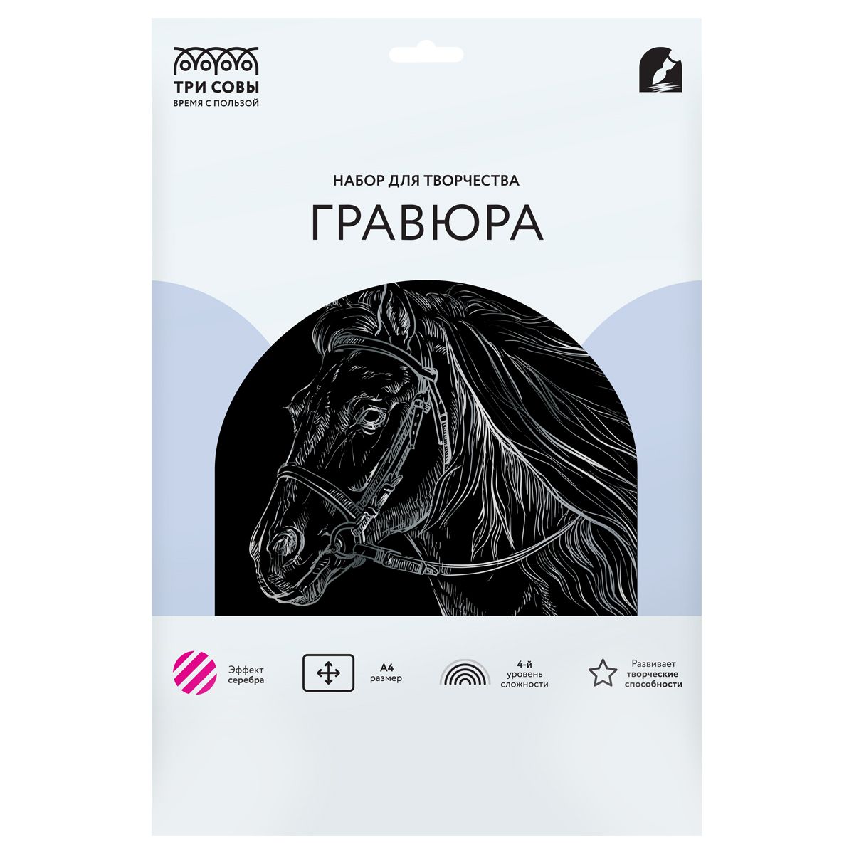 Гравюра с эффектом серебра ТРИ СОВЫ "Лошадь", А4