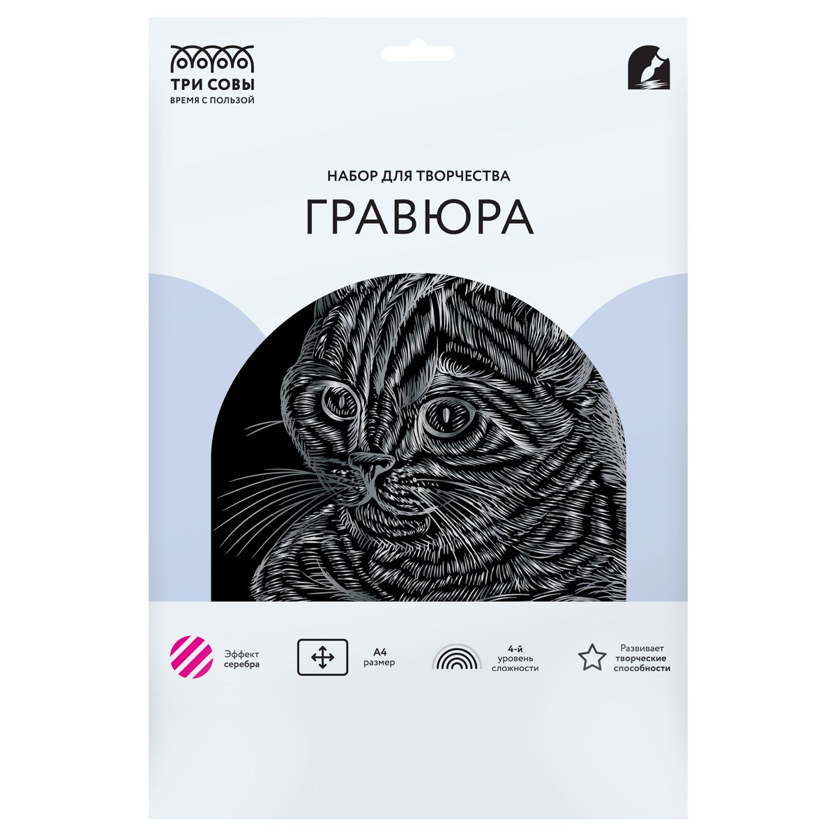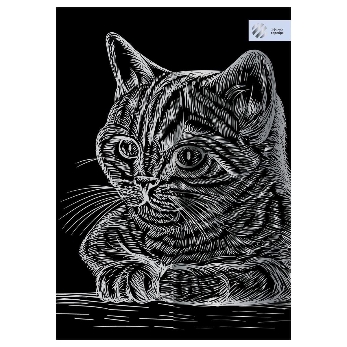 Гравюра с эффектом серебра ТРИ СОВЫ "Полосатый кот", А4