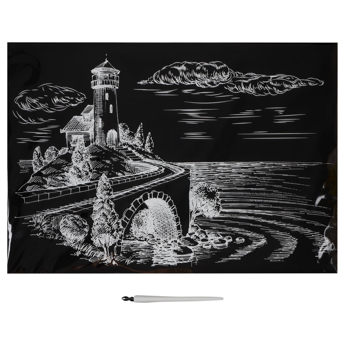 Состав набора: основа размером А3, штихель, крепление на стену.