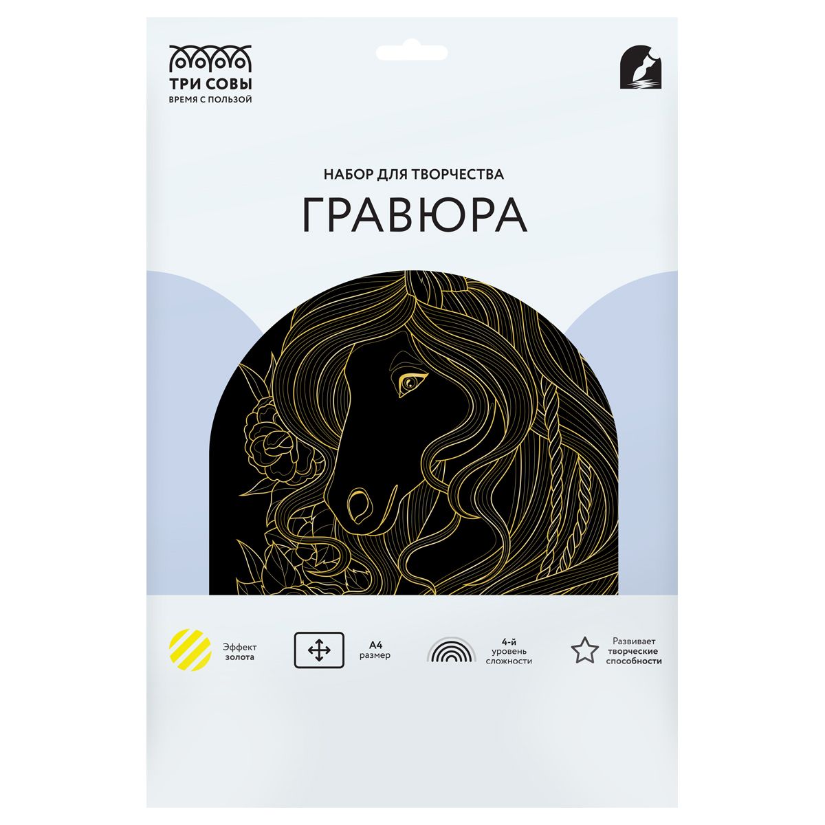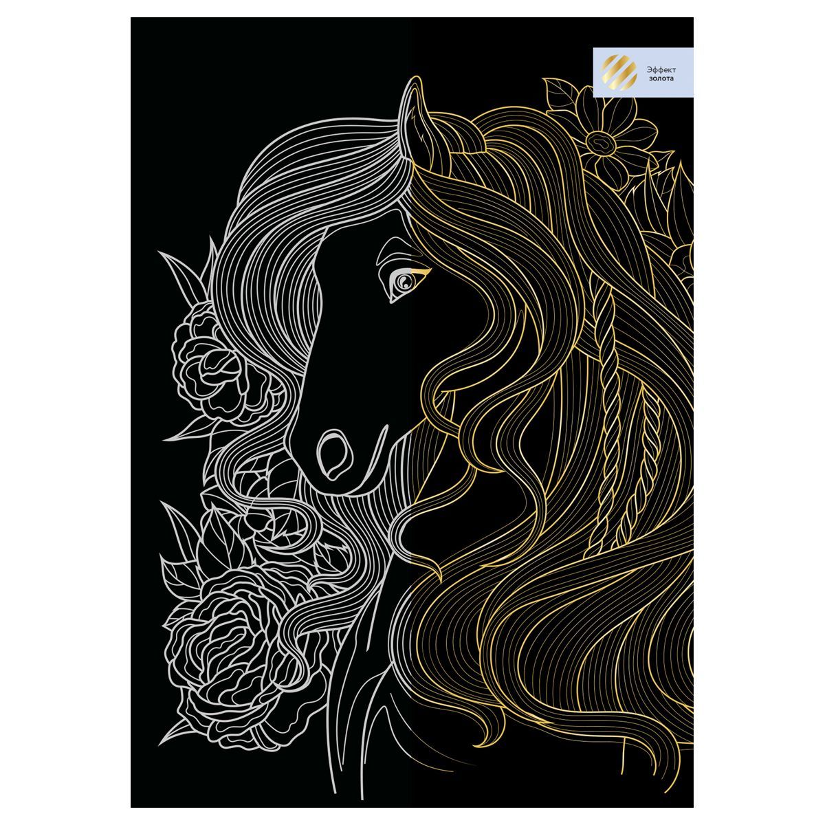 Гравюра с эффектом золота ТРИ СОВЫ "Лошадь в цветах", А4