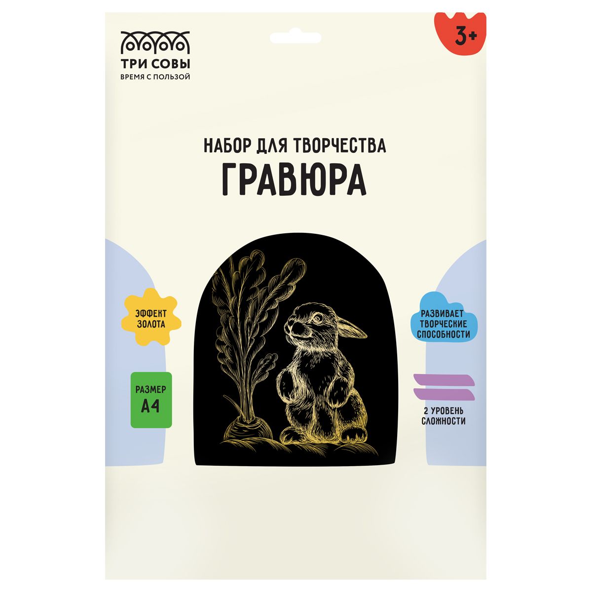 Гравюра с эффектом золота ТРИ СОВЫ "Зайка", А4