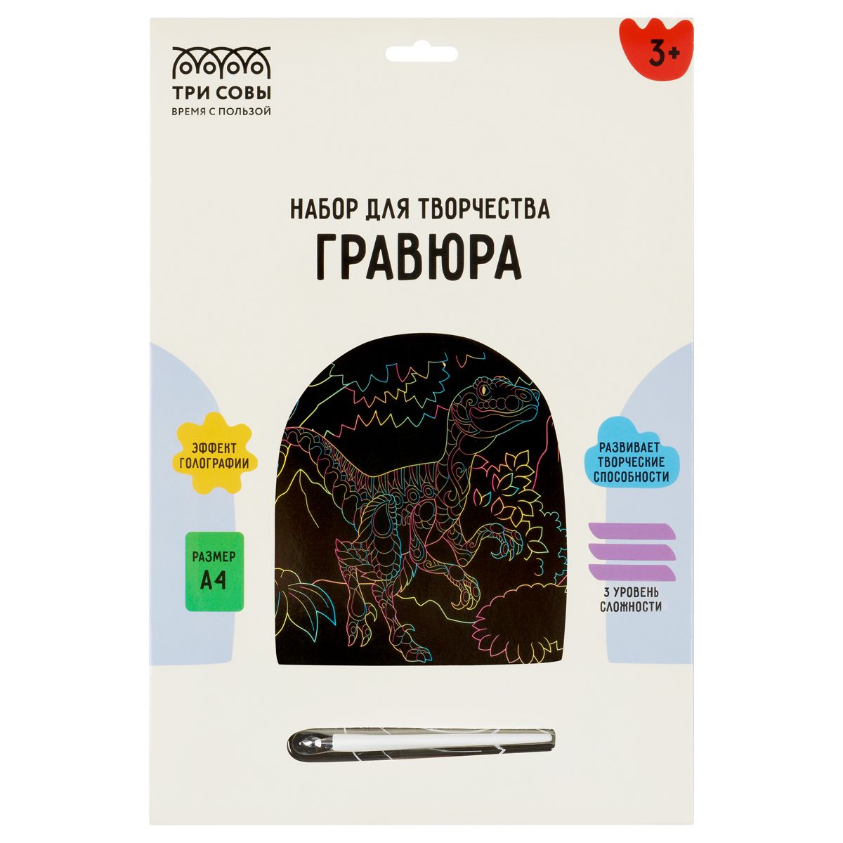 Гравюра с голографическим эффектом ТРИ СОВЫ "Динозавр", А4