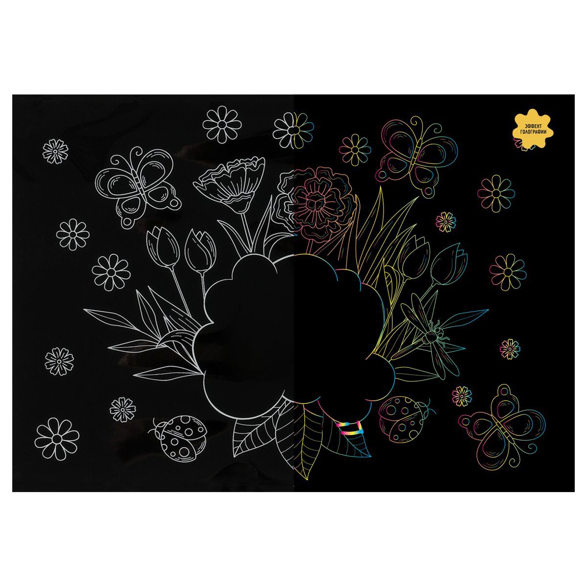 Гравюра с голографическим эффектом ТРИ СОВЫ "Открытка. Цветы", А5