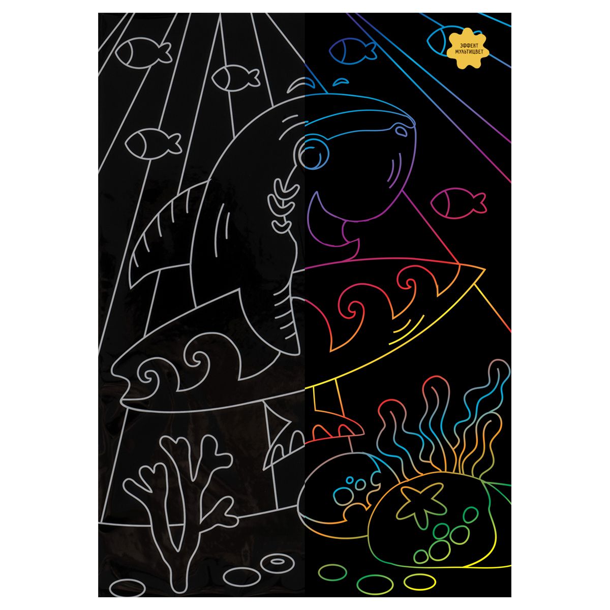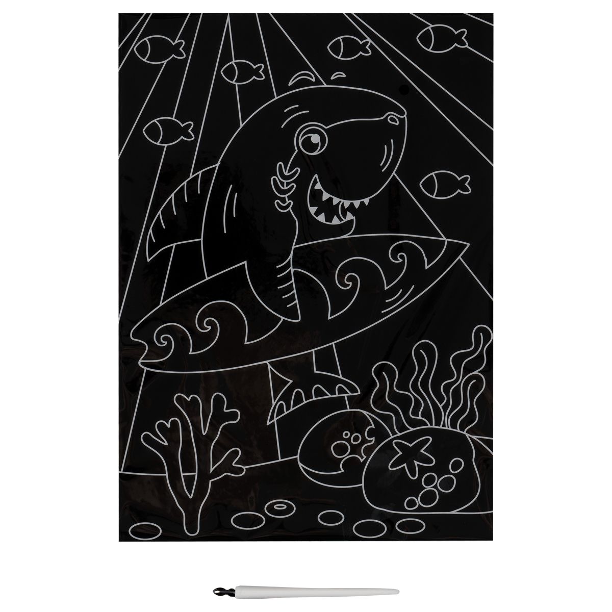 Гравюра с мультицветной основой ТРИ СОВЫ "Акула-серфер", А4