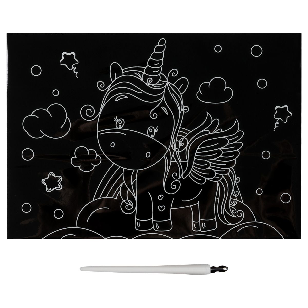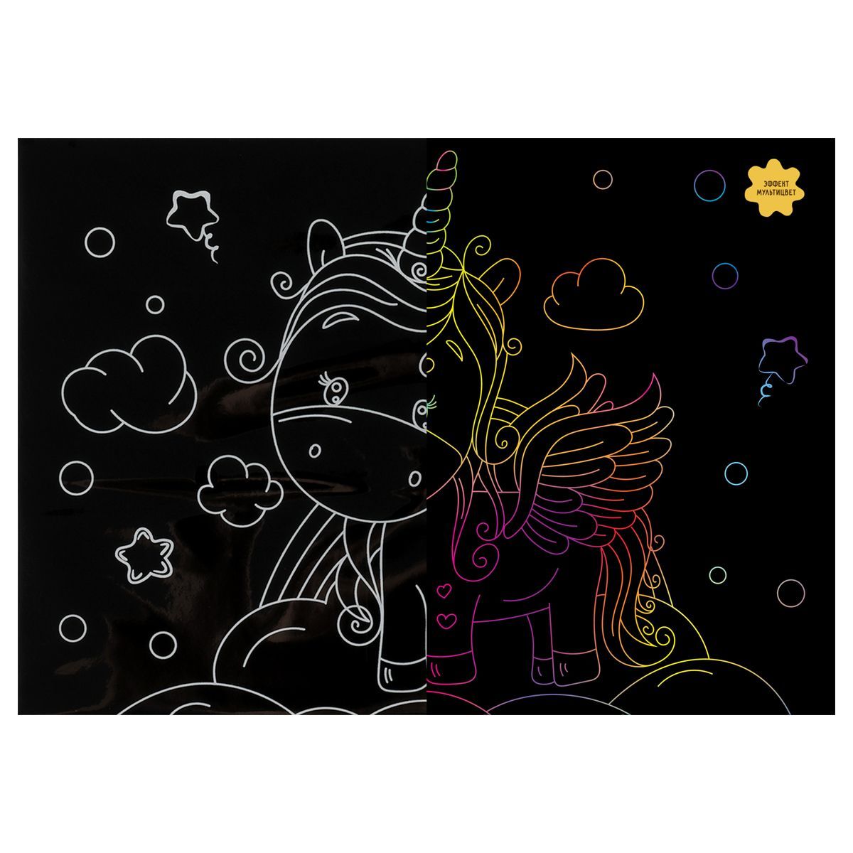 Гравюра с мультицветной основой ТРИ СОВЫ "Милый единорог", А5