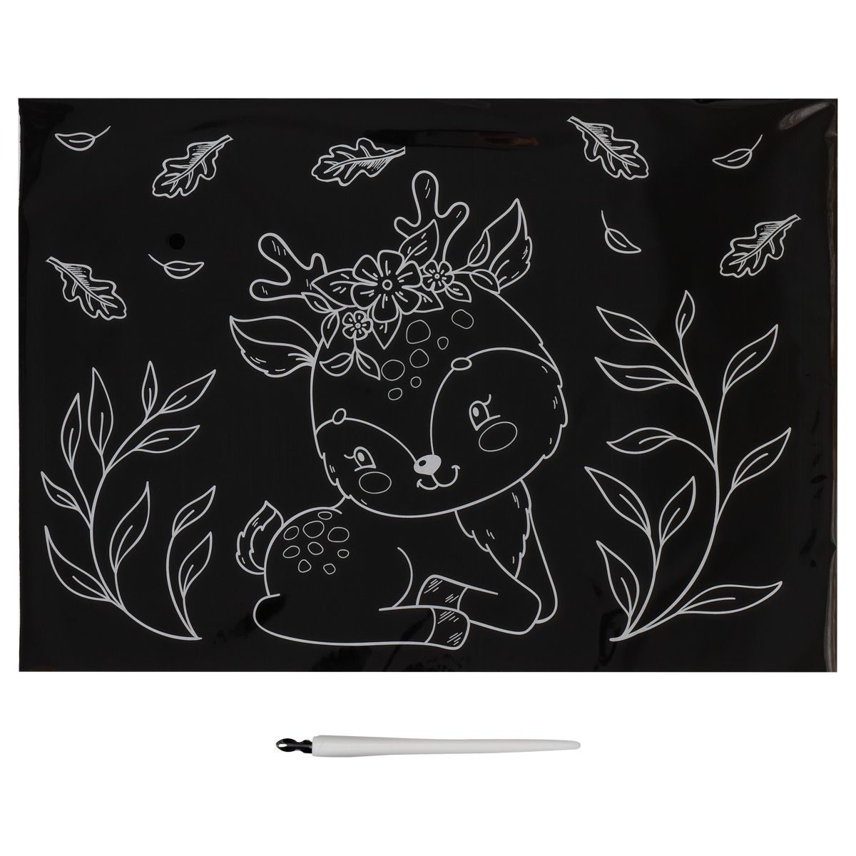 Гравюра с мультицветной основой ТРИ СОВЫ "Олененок", А4