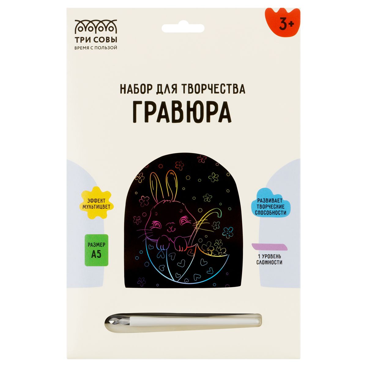 Гравюра с мультицветной основой ТРИ СОВЫ "Зайчик", А5