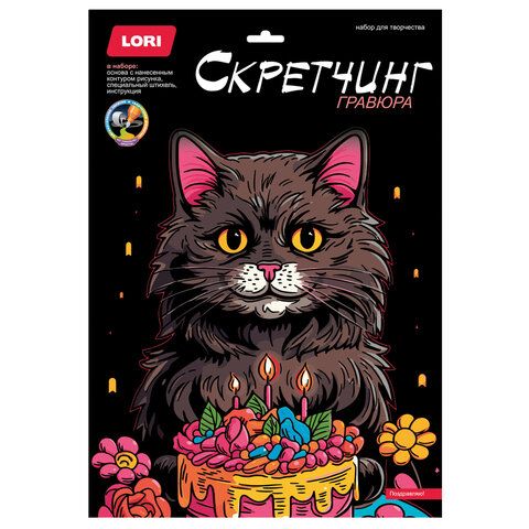 Гравюра в технике Скретчинг "Животные" АССОРТИ 4 вида, цветная основа 30х40 см, штихель, LORI, 001