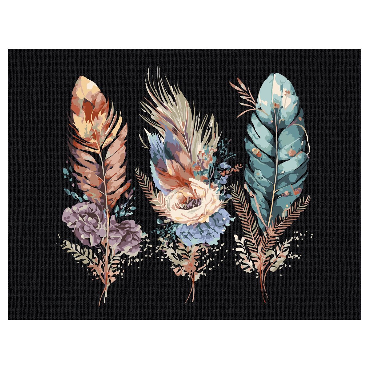 Картина по номерам на черном холсте ТРИ СОВЫ "Легкость пера", 30*40, c акриловыми красками и кистями