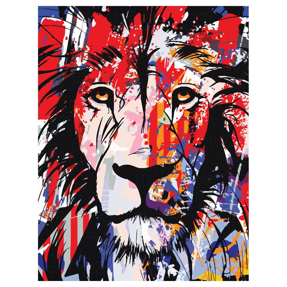 Картина по номерам на черном холсте ТРИ СОВЫ "Лев", 30*40, c акриловыми красками и кистями