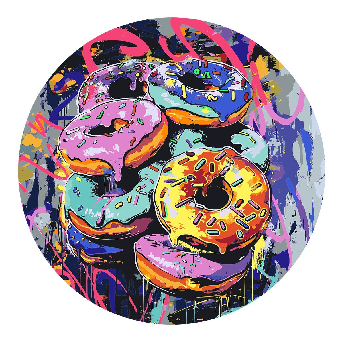 Картина по номерам на фигурном холсте ТРИ СОВЫ "Донаты Арт", форма круг, с акриловыми красками и кистями