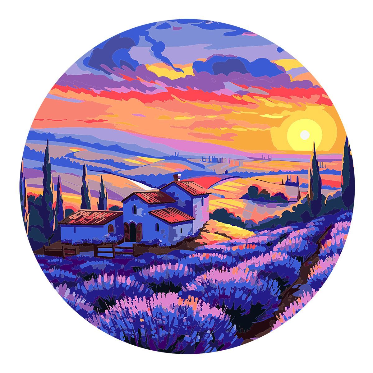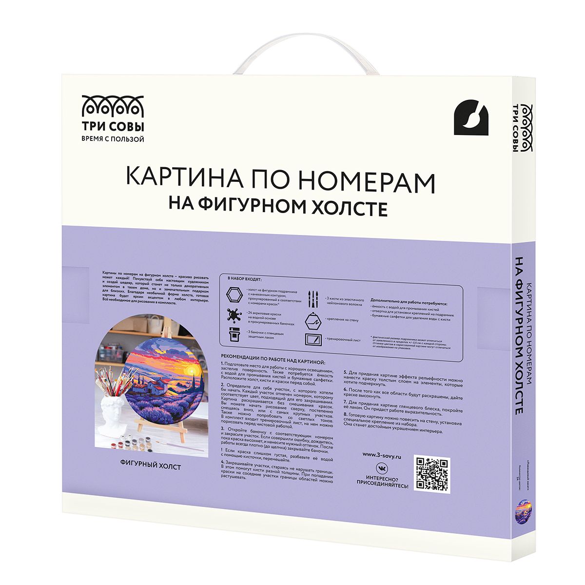 Картина по номерам на фигурном холсте ТРИ СОВЫ "Лавандовый закат", форма круг, с акриловыми красками и кистями