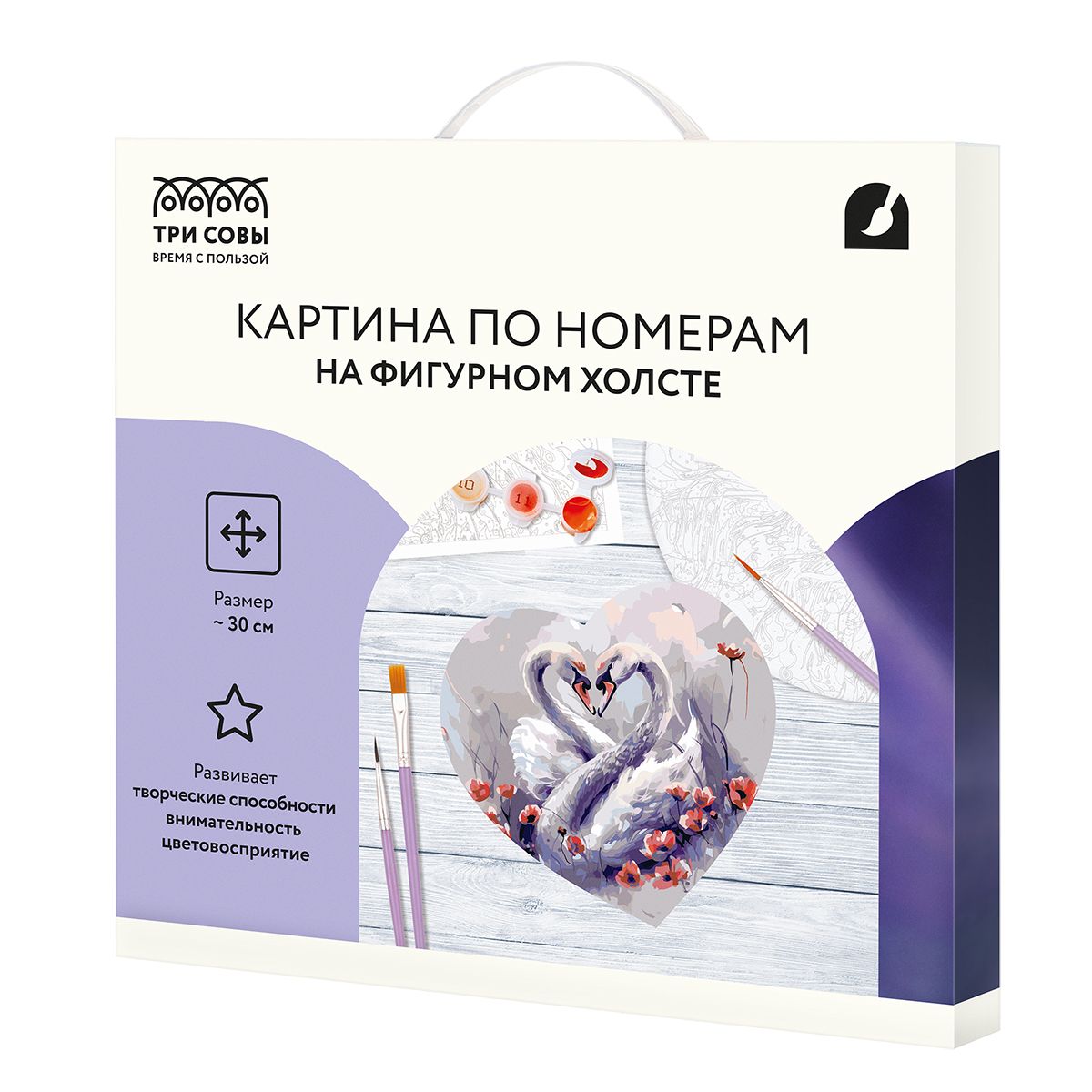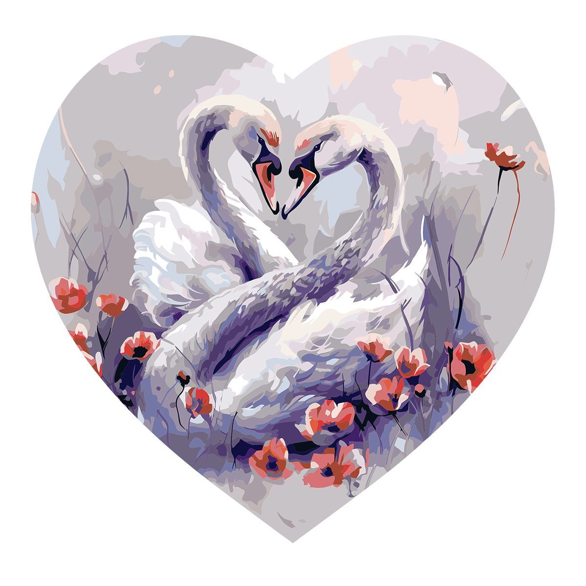 Картина по номерам на фигурном холсте ТРИ СОВЫ "Лебединая верность", форма сердце, с акриловыми красками и кистями