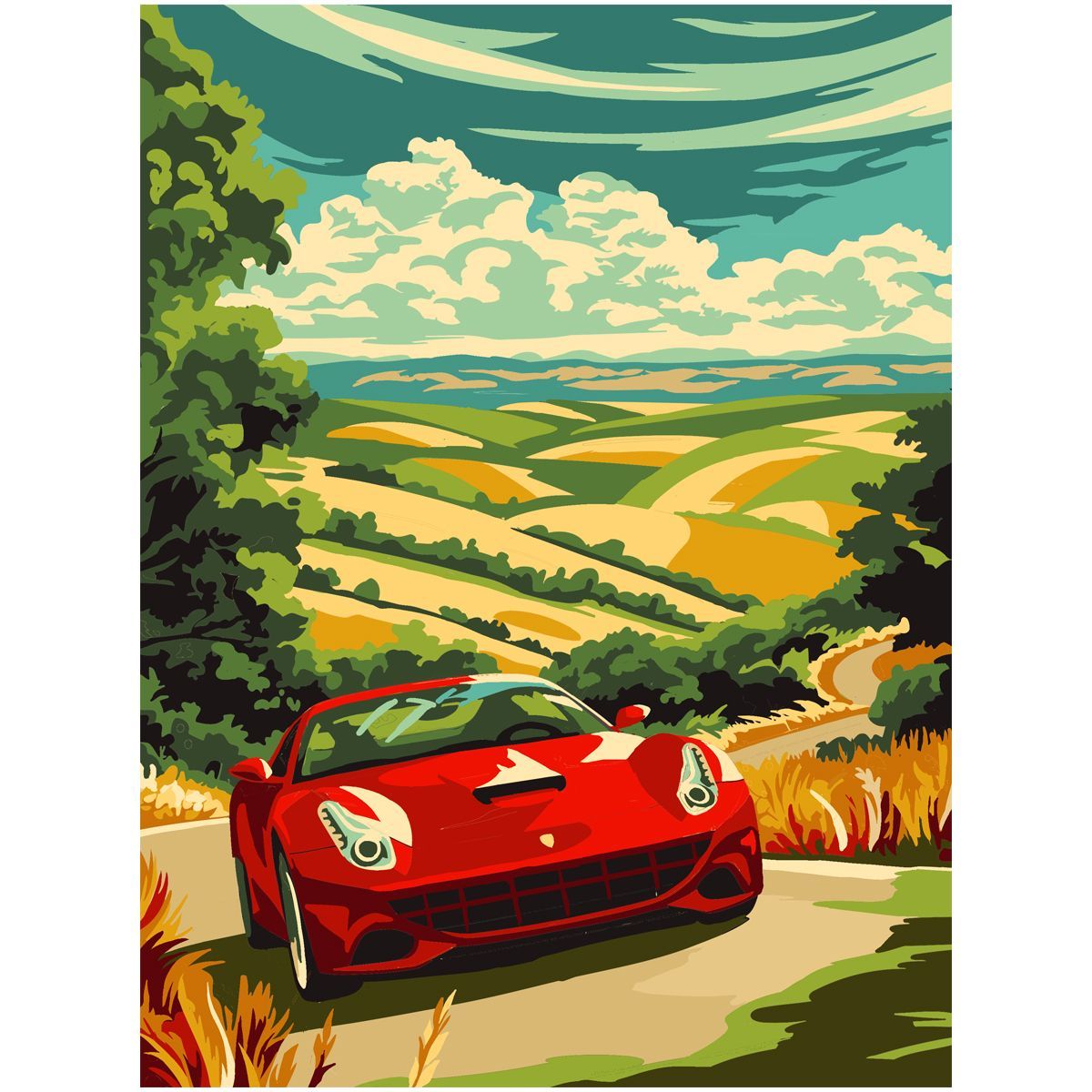 Картина по номерам на картоне ТРИ СОВЫ Спорткар в Тоскане", 30*40, с акриловыми красками и кистями
