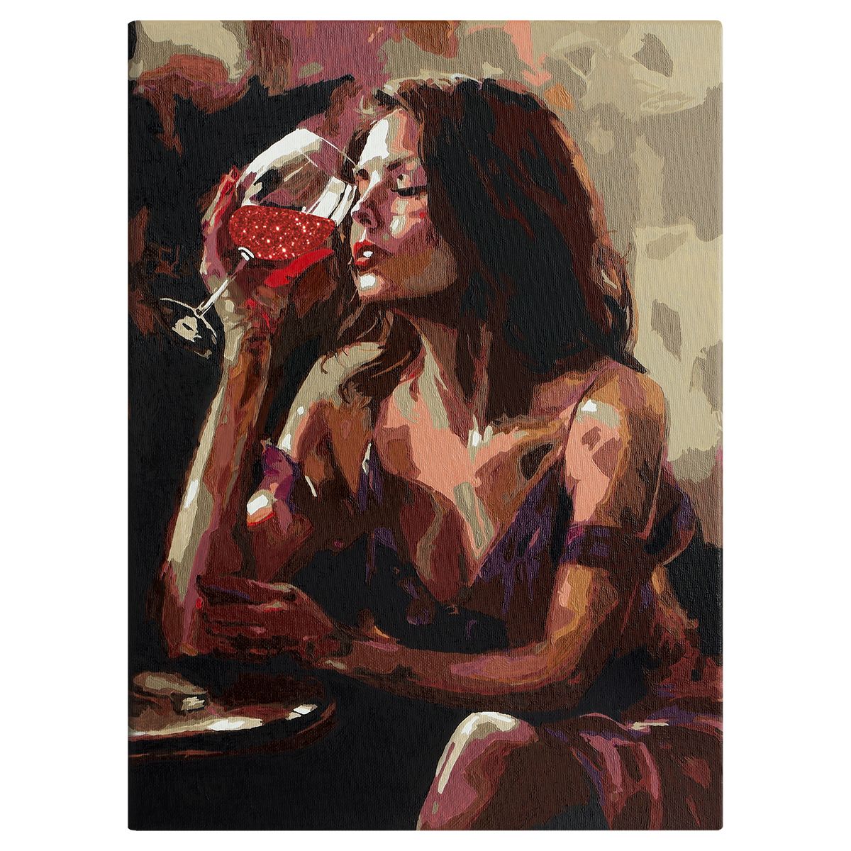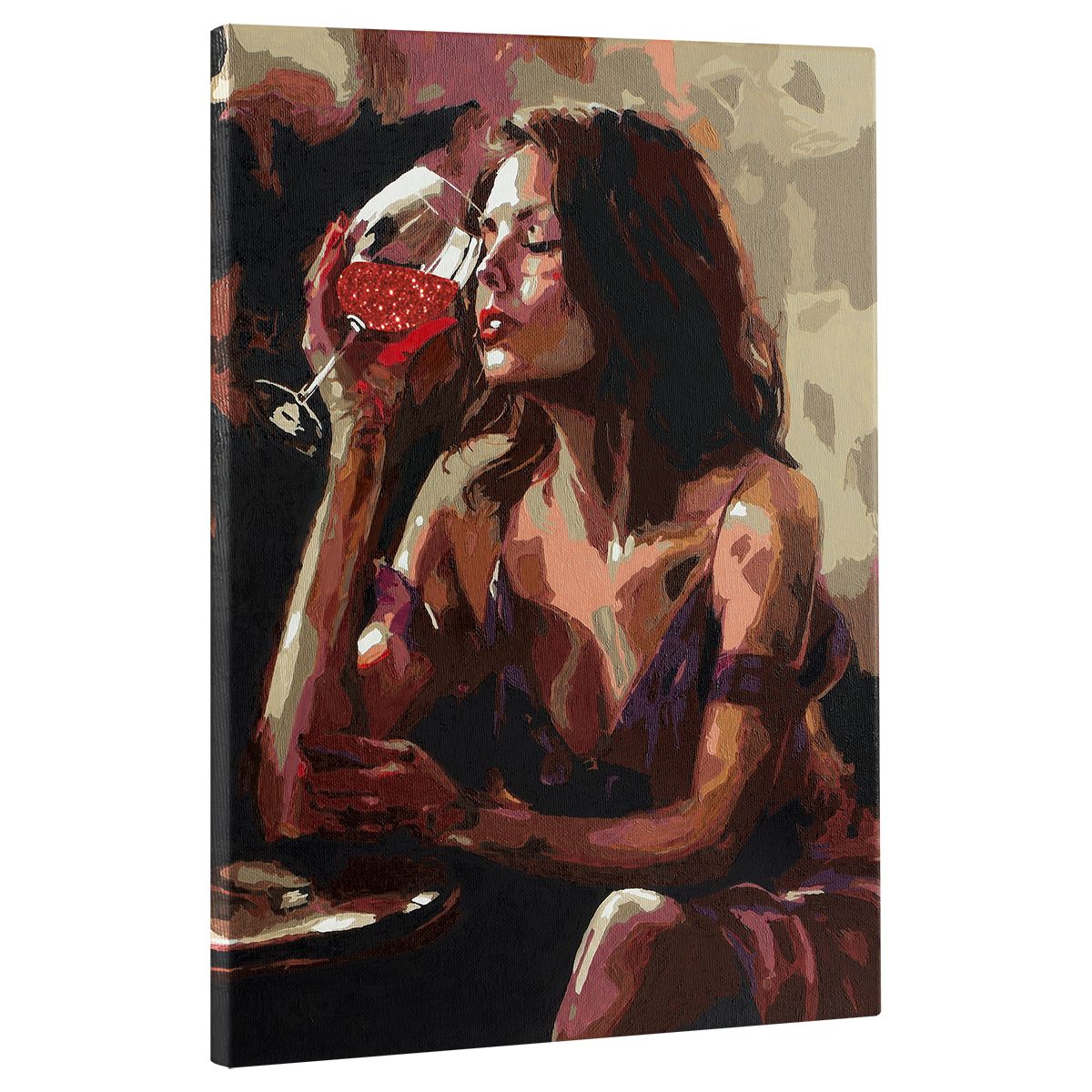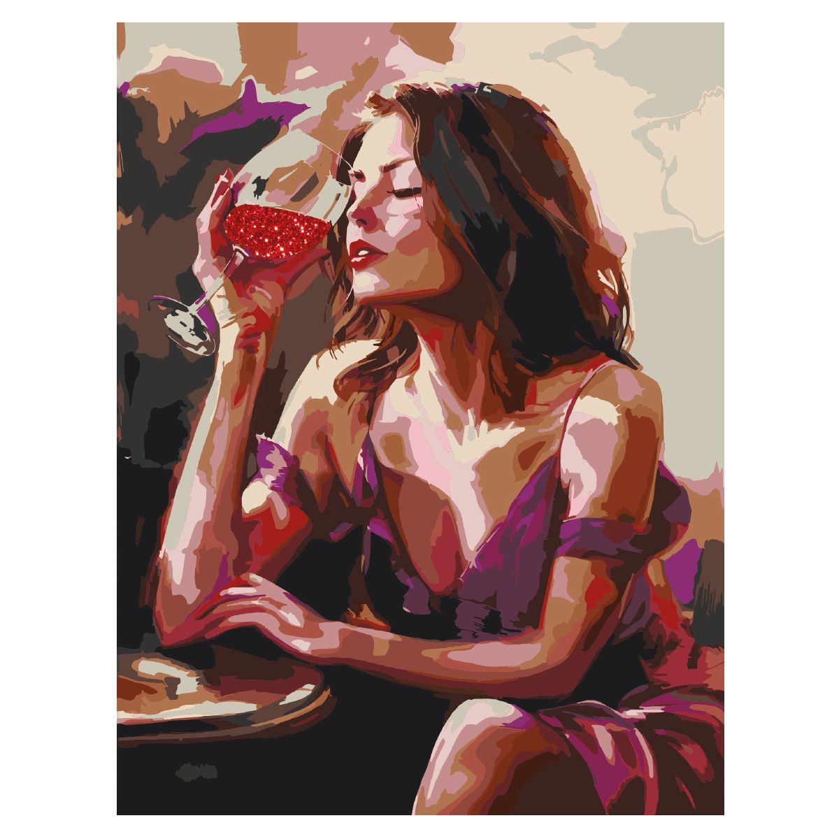 Картина по номерам на холсте с глиттером ТРИ СОВЫ "Девушка с бокалом", 30*40, с акриловыми красками и кистями