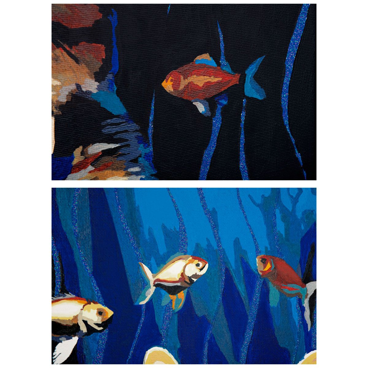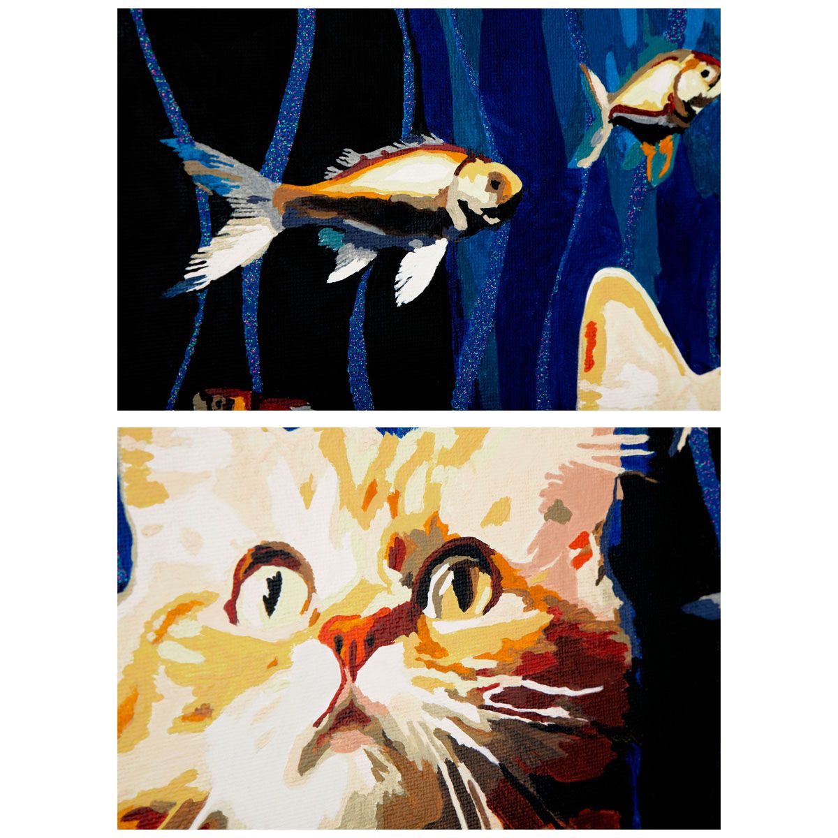 ∙ холст с глиттером на деревянном подрамнике размером 40*50 см с нанесенным контуром, пронумерованный в соответствии с номерами красок. Технология точной разбивки сюжета картины на разные цветовые оттенки гарантируют правильность исполнения полотна;