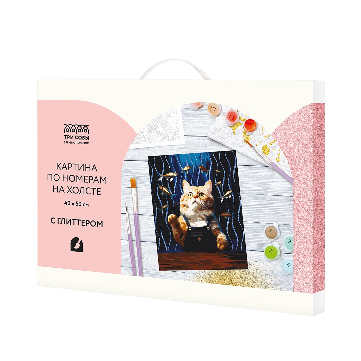 Картина по номерам на холсте с глиттером ТРИ СОВЫ "Кошачьи мечты", 40*50, с акриловыми красками и кистями