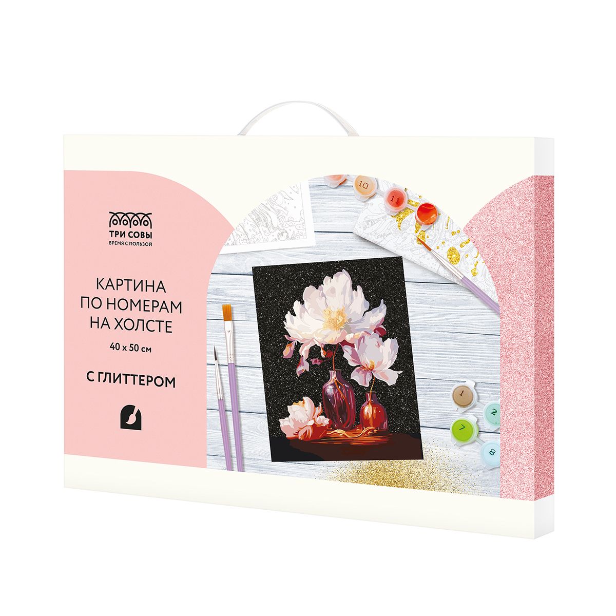 Картина по номерам на холсте с глиттером ТРИ СОВЫ "Натюрморт", 40*50, с акриловыми красками и кистями