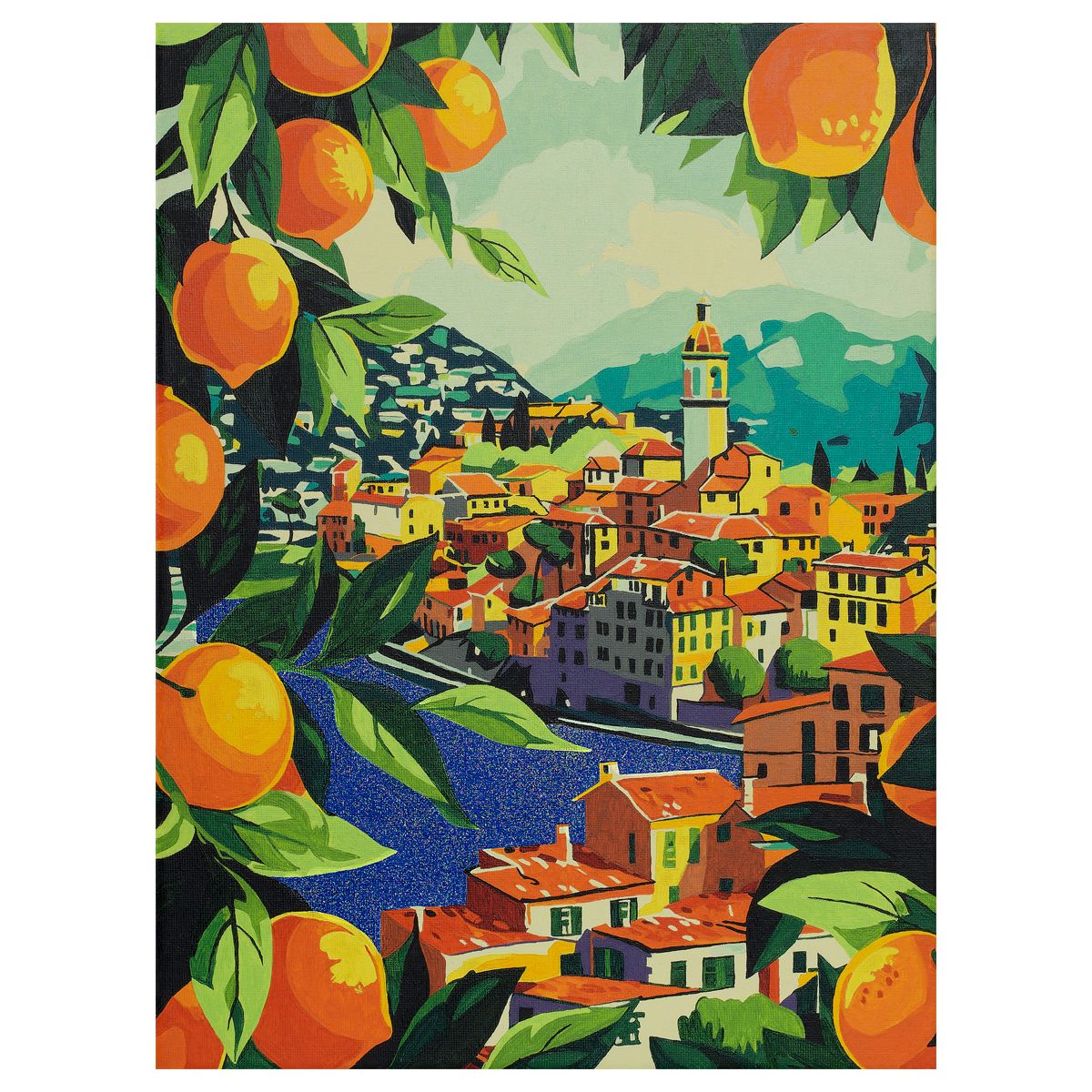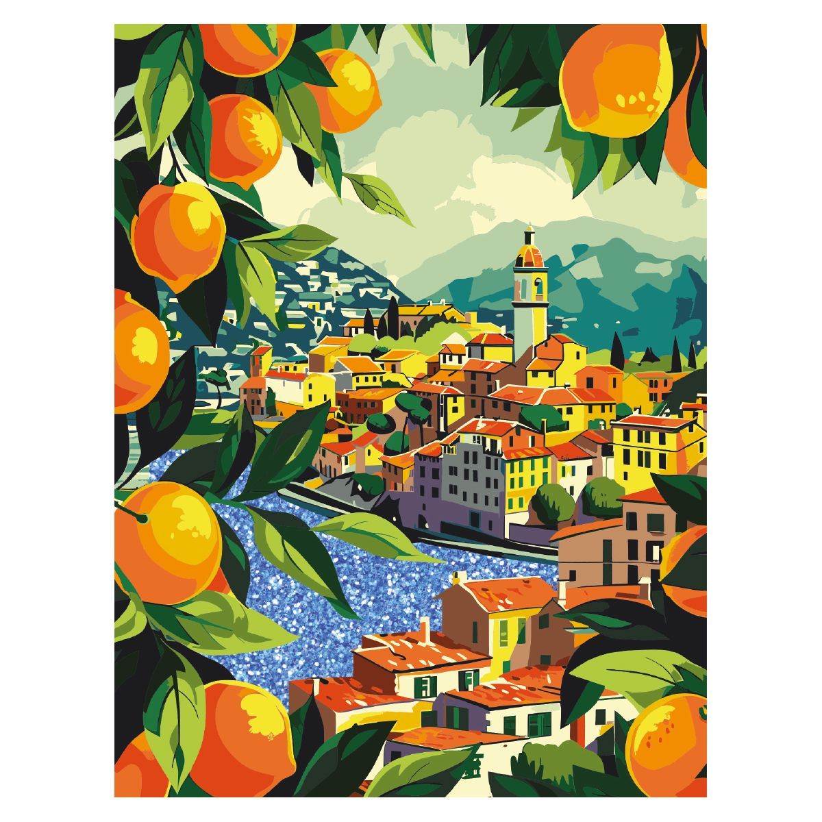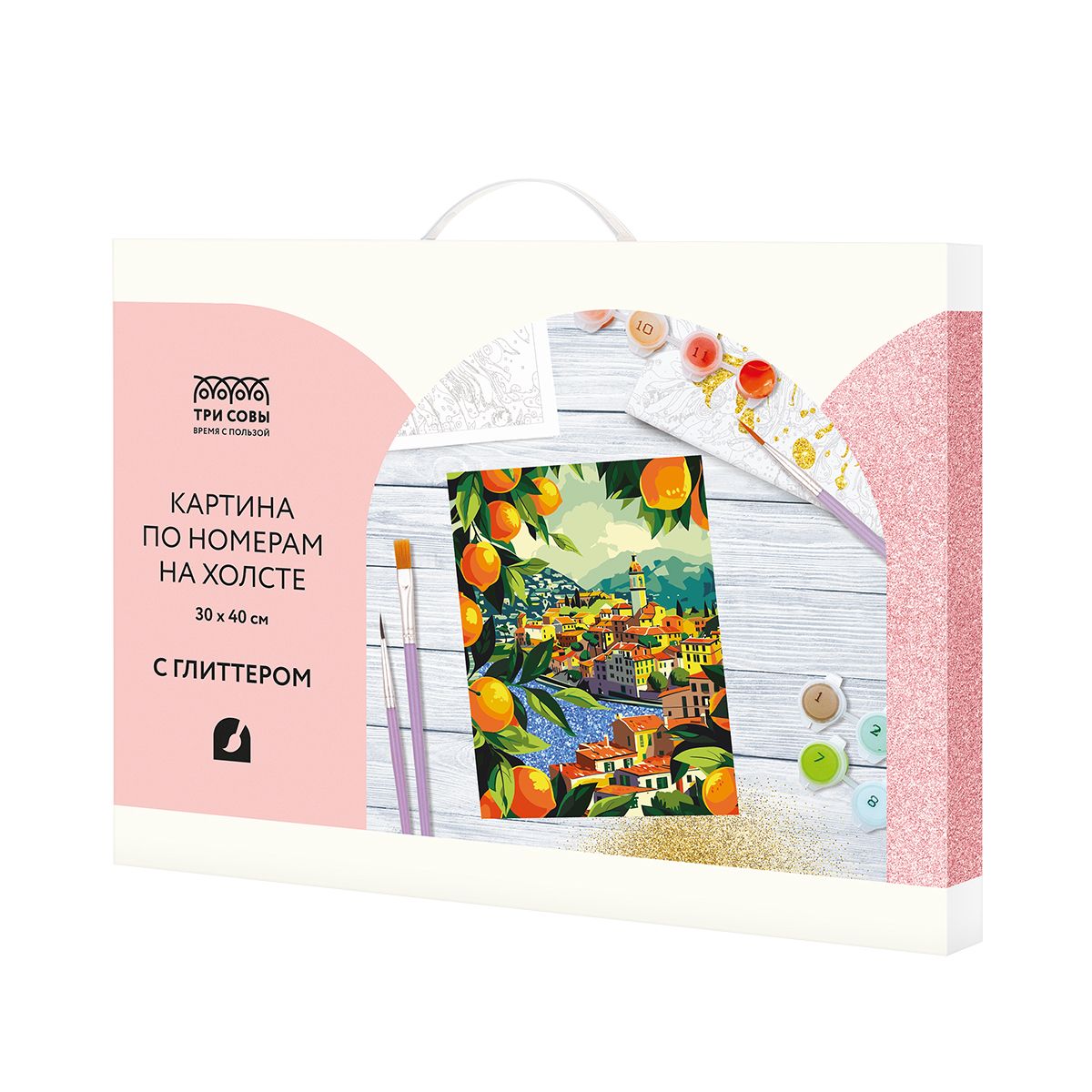 Картина по номерам на холсте с глиттером ТРИ СОВЫ "Средиземноморское побережье", 30*40, с акриловыми красками и кистями