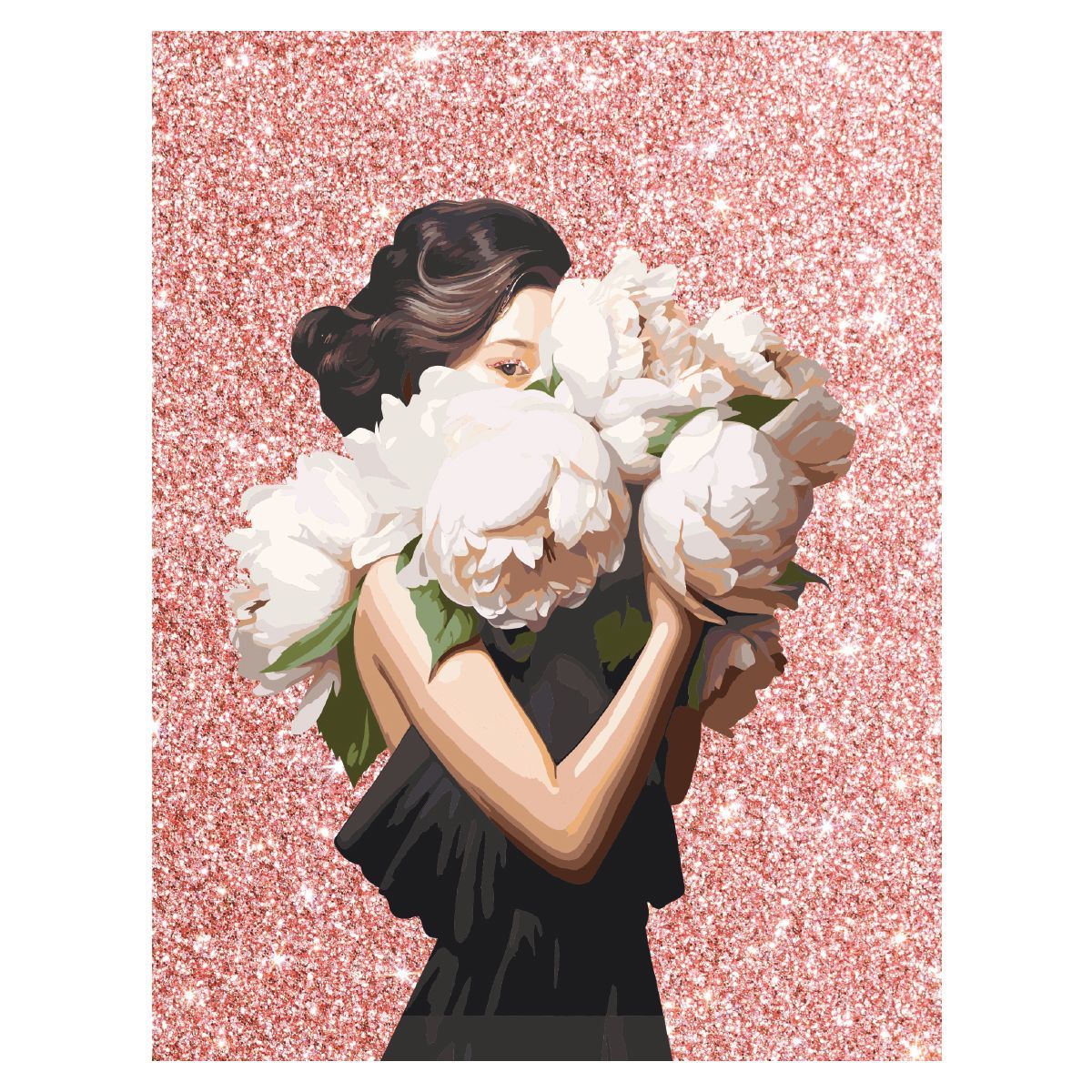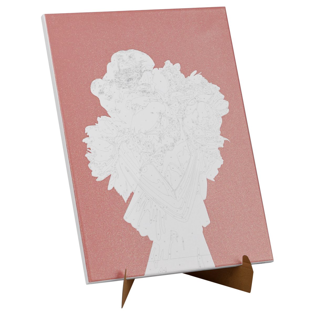 ∙ холст с глиттером на деревянном подрамнике размером 30*40 см с нанесенным контуром, пронумерованный в соответствии с номерами красок. Технология точной разбивки сюжета картины на разные цветовые оттенки гарантируют правильность исполнения полотна;