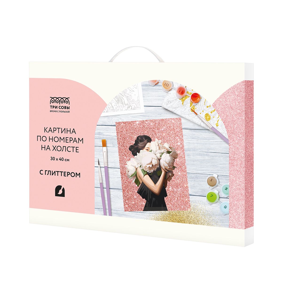 Картина по номерам на холсте с глиттером ТРИ СОВЫ "Тайна взгляда", 30*40, с акриловыми красками и кистями