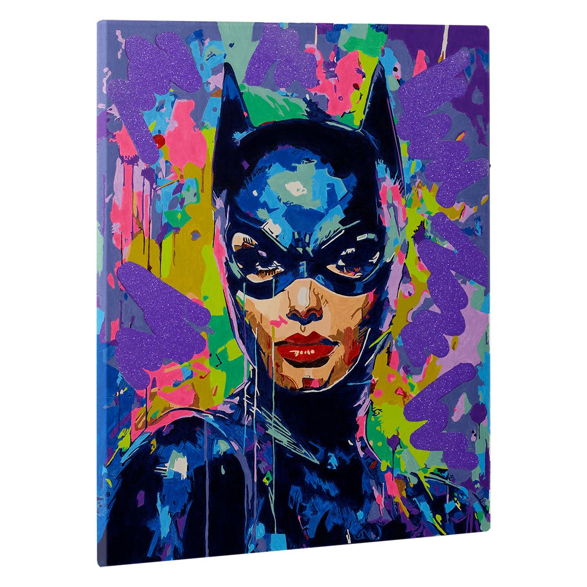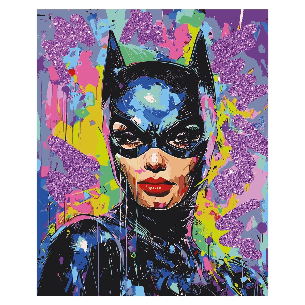 Картина по номерам на холсте с глиттером ТРИ СОВЫ "Женщина-кошка", 40*50, с акриловыми красками и кистями