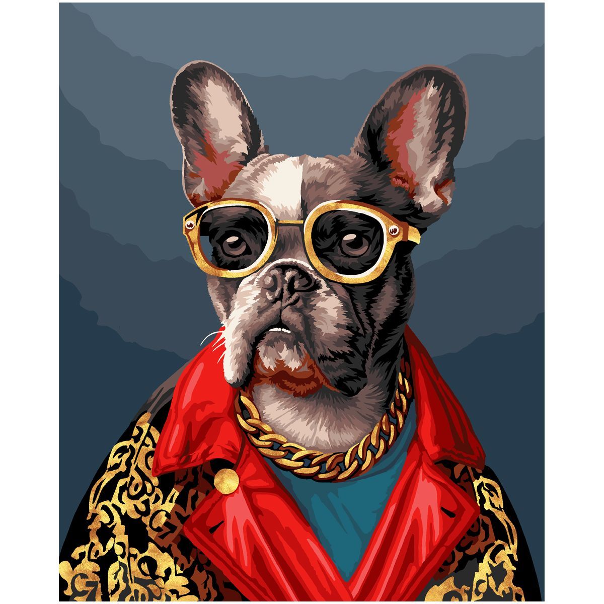 Картина по номерам на холсте ТРИ СОВЫ "Бульдог на стиле", 40*50, с акриловыми красками и кистями