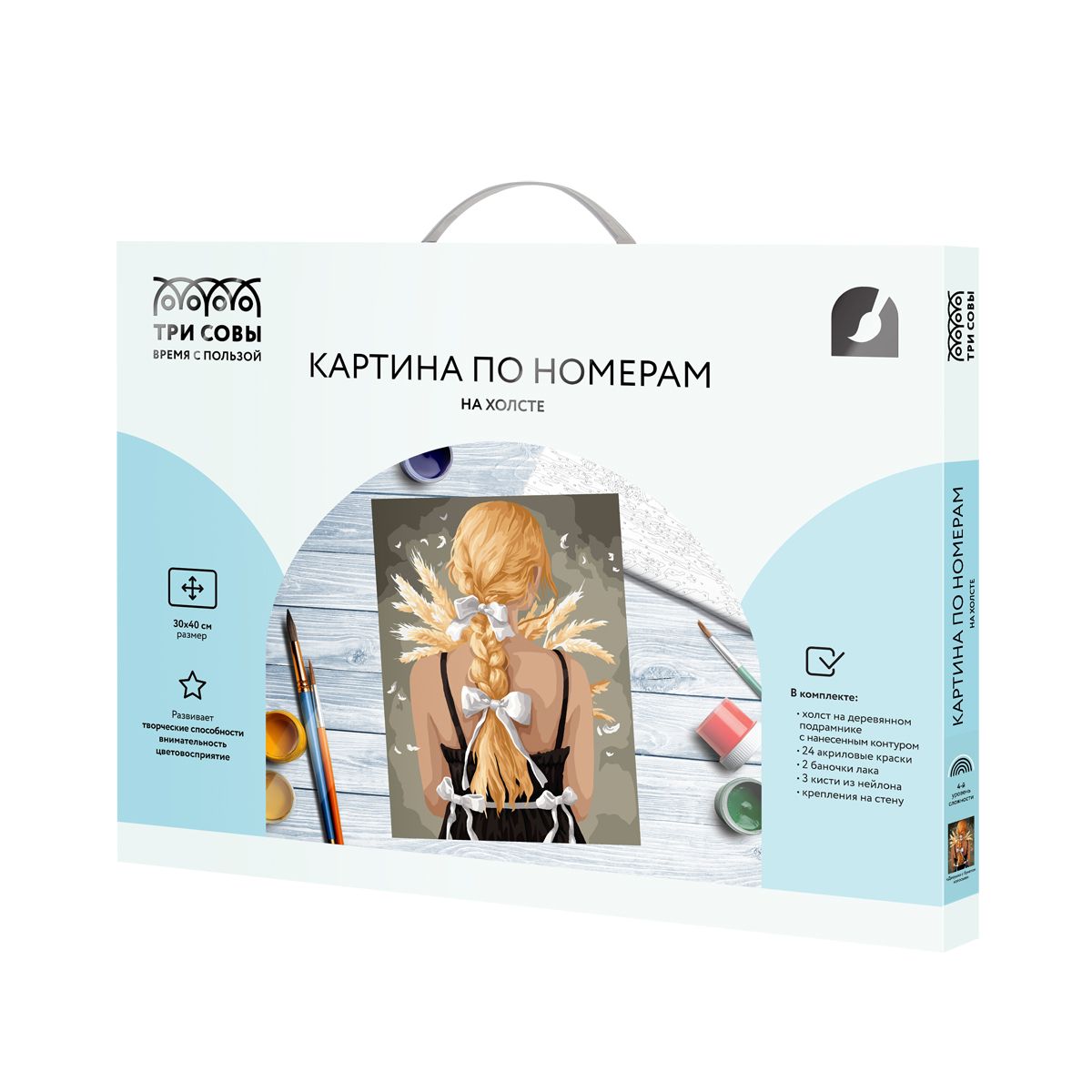 Картина по номерам на холсте ТРИ СОВЫ "Девушка с букетом колосьев", 30*40, с акриловыми красками и кистями