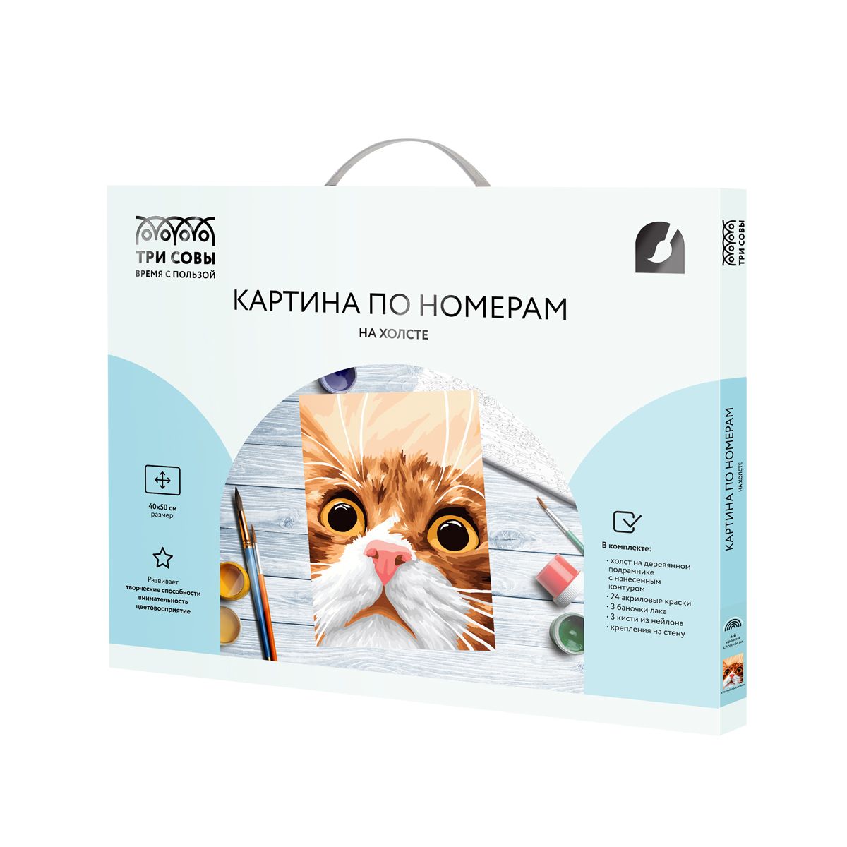 Картина по номерам на холсте ТРИ СОВЫ "Усатый-полосатый", 40*50, с акриловыми красками и кистями