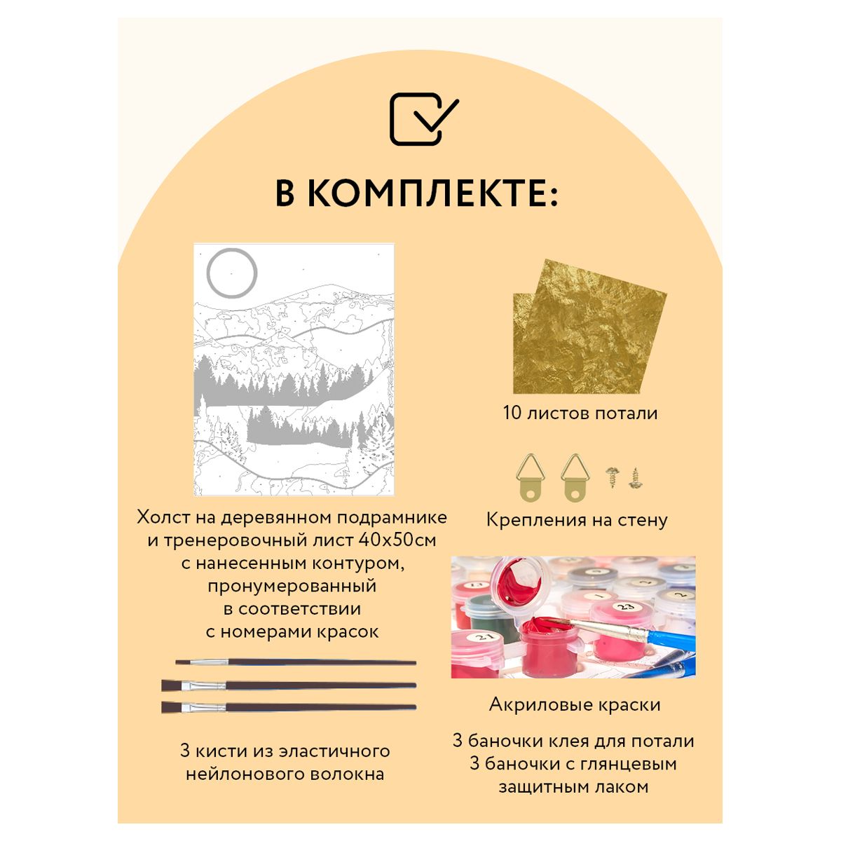 • холст на деревянном подрамнике 40х50см с нанесенным контуром, пронумерованный в соответствии с номерами красок