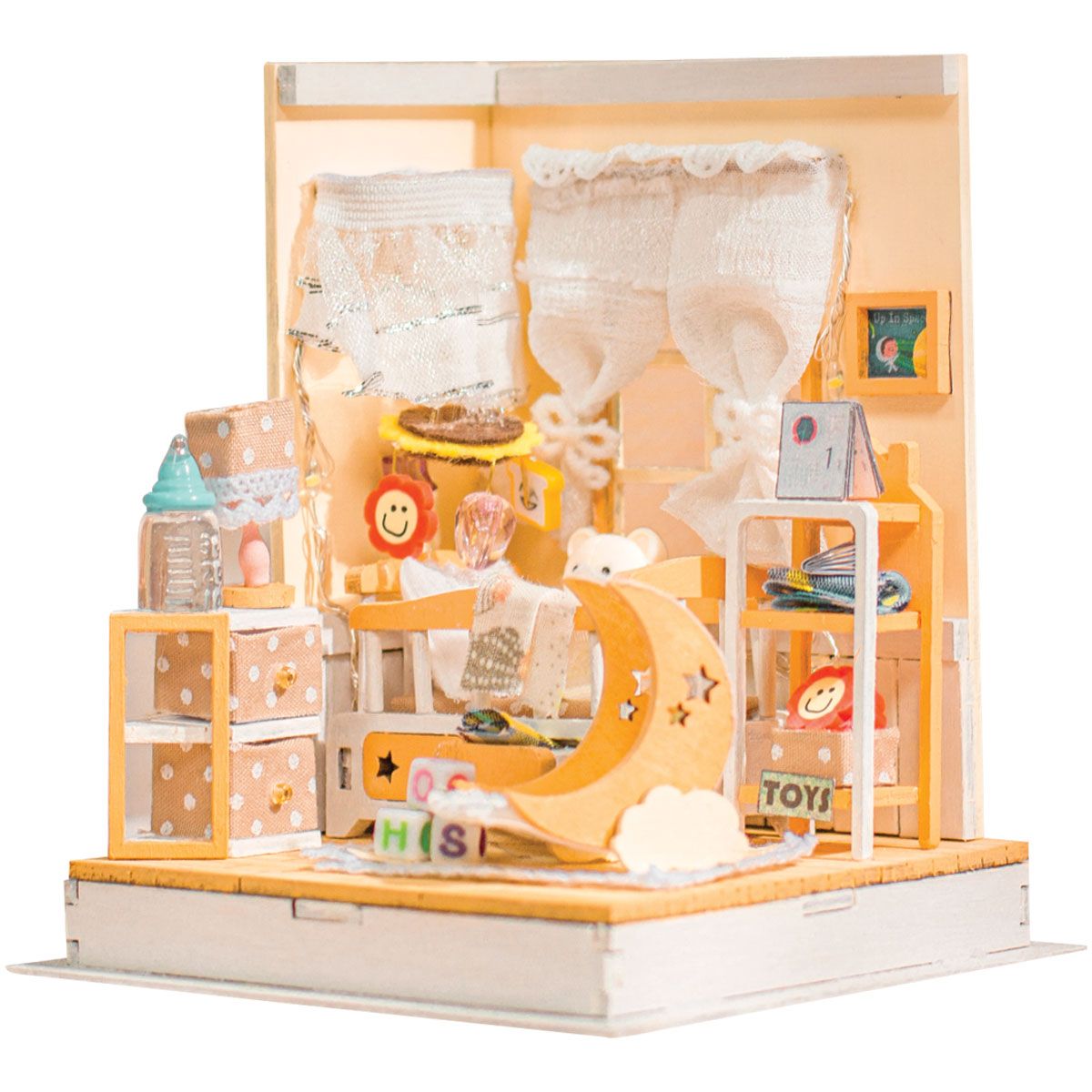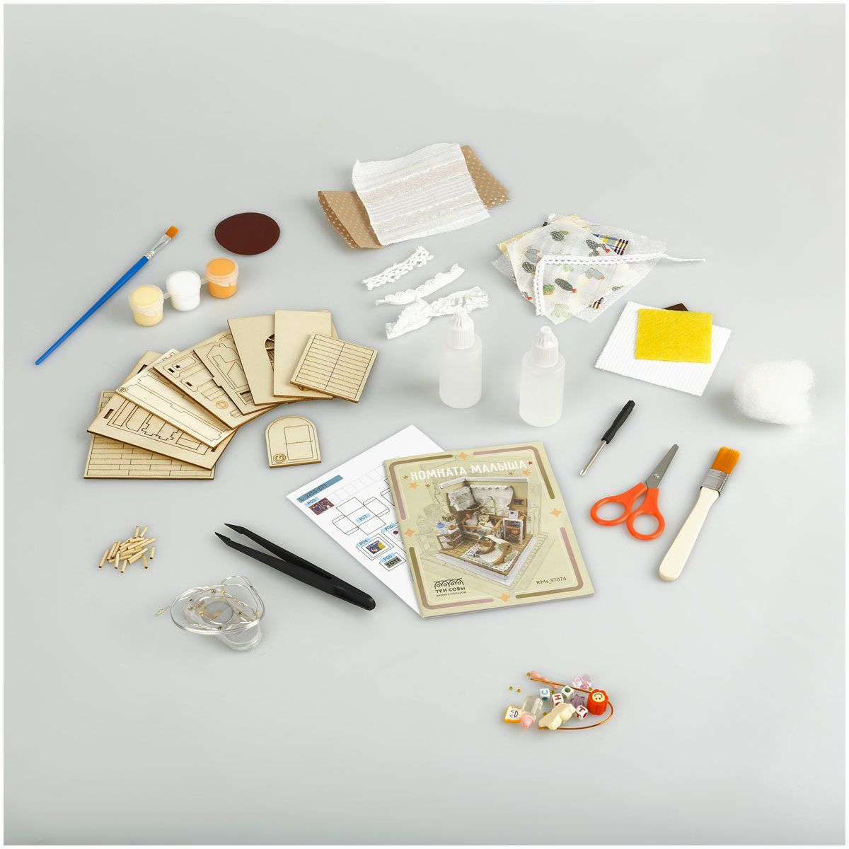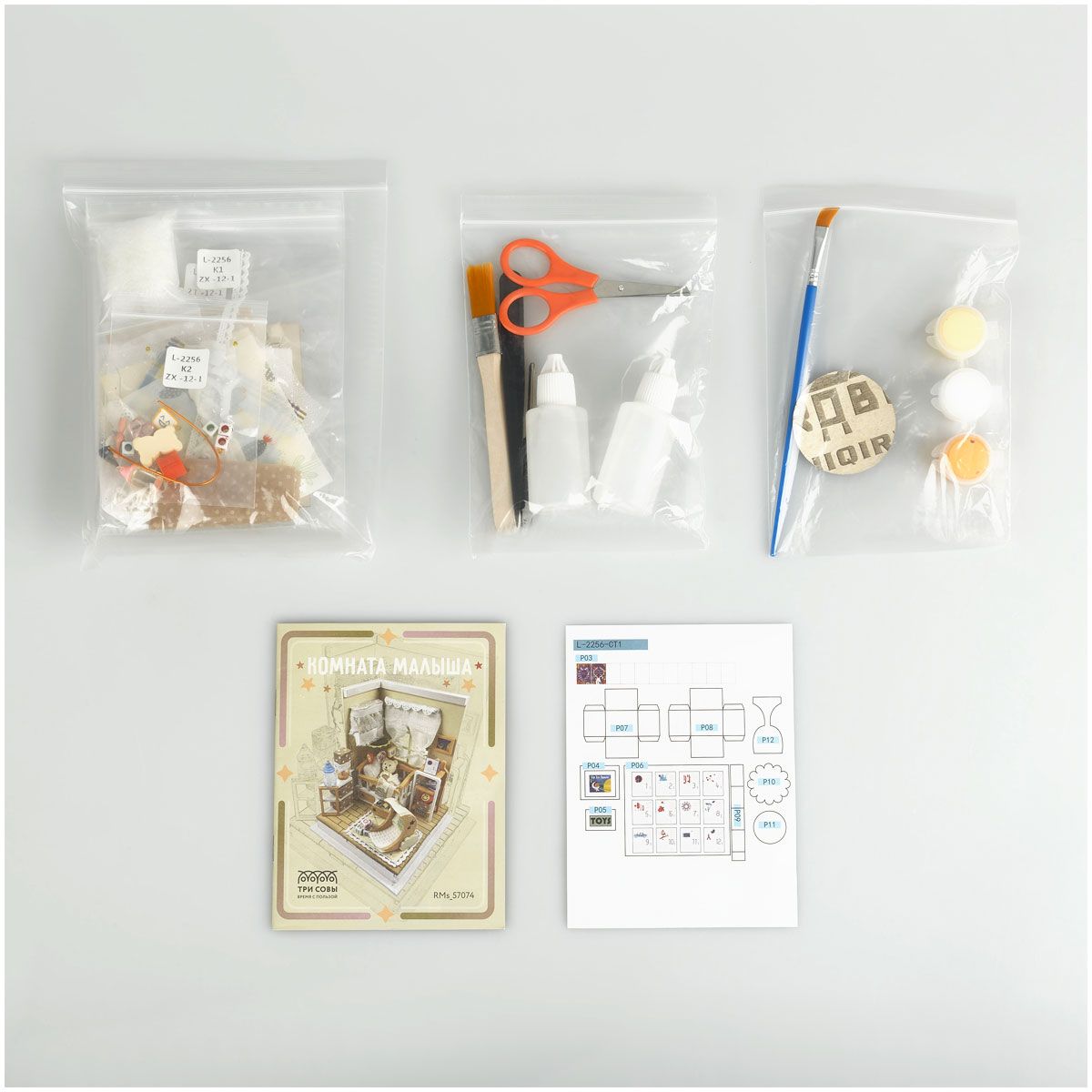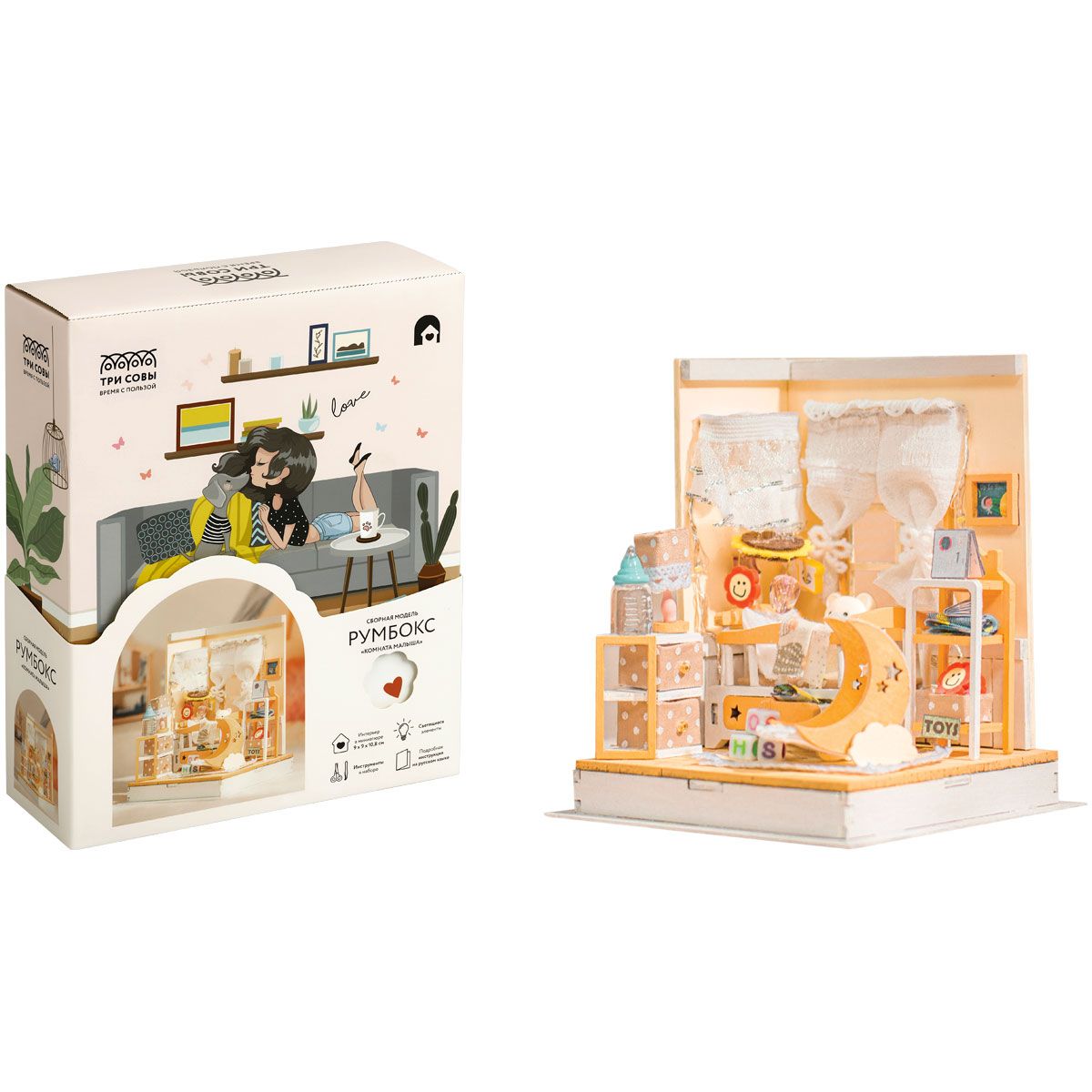 Сборная модель ТРИ СОВЫ, Румбокс "Комната малыша", инструменты, клей, светодиоды, батарейки, картонная коробка