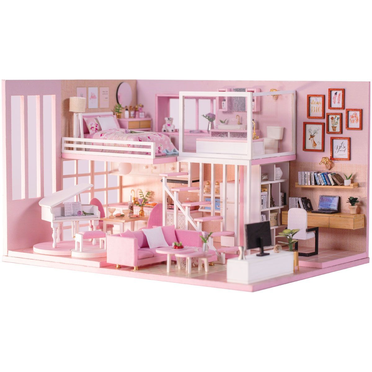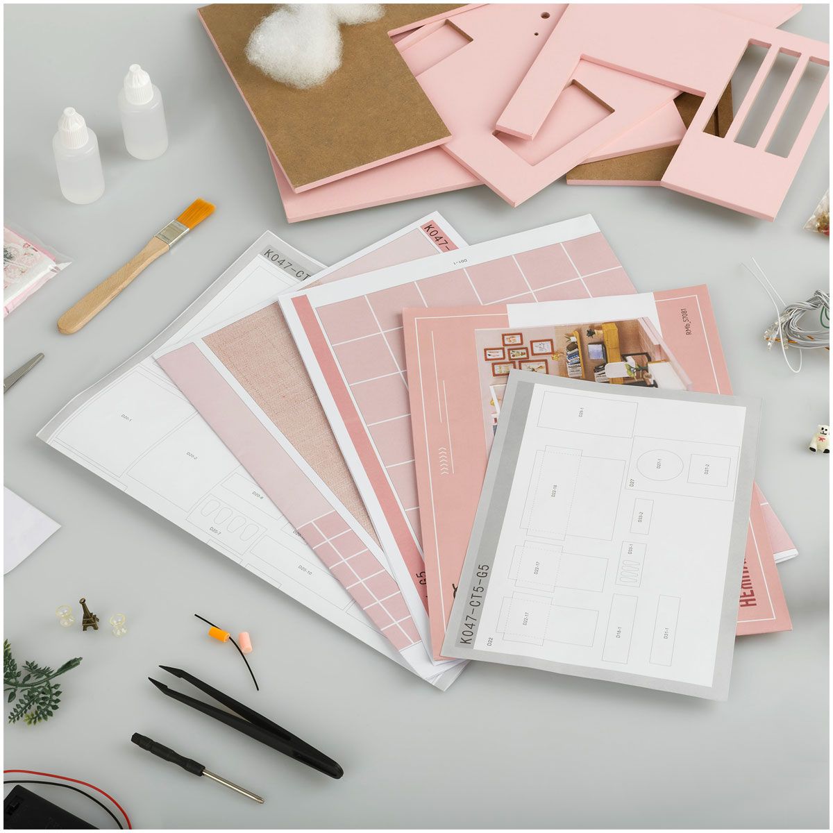 Сборная модель ТРИ СОВЫ, Румбокс "Нежная студия", инструменты, клей, светодиоды, картонная коробка