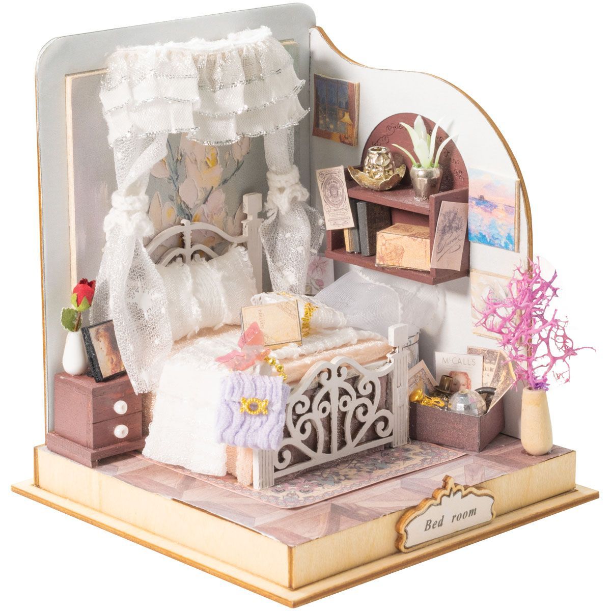 Сборная модель ТРИ СОВЫ, Румбокс "Уютная спальня", инструменты, клей, картонная коробка