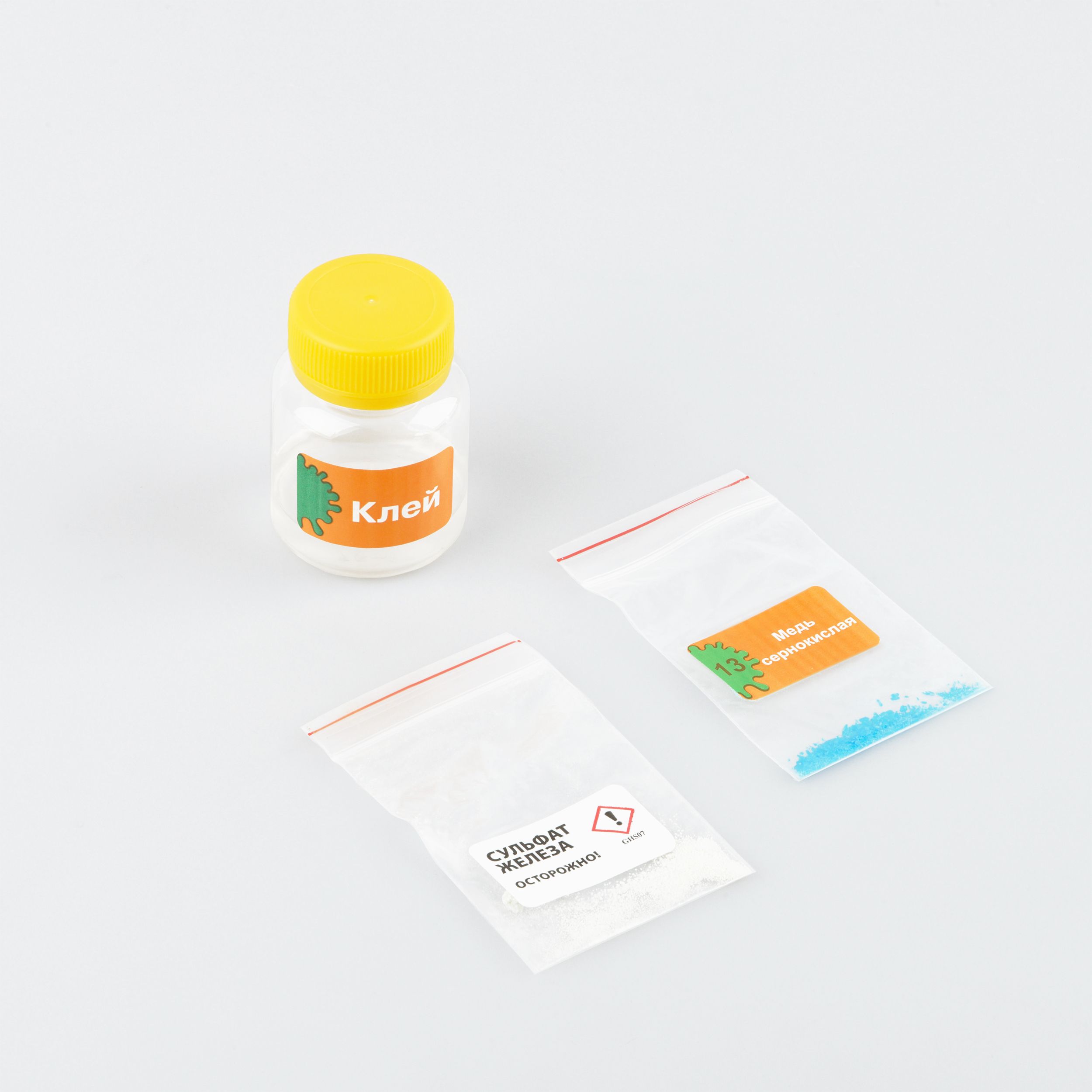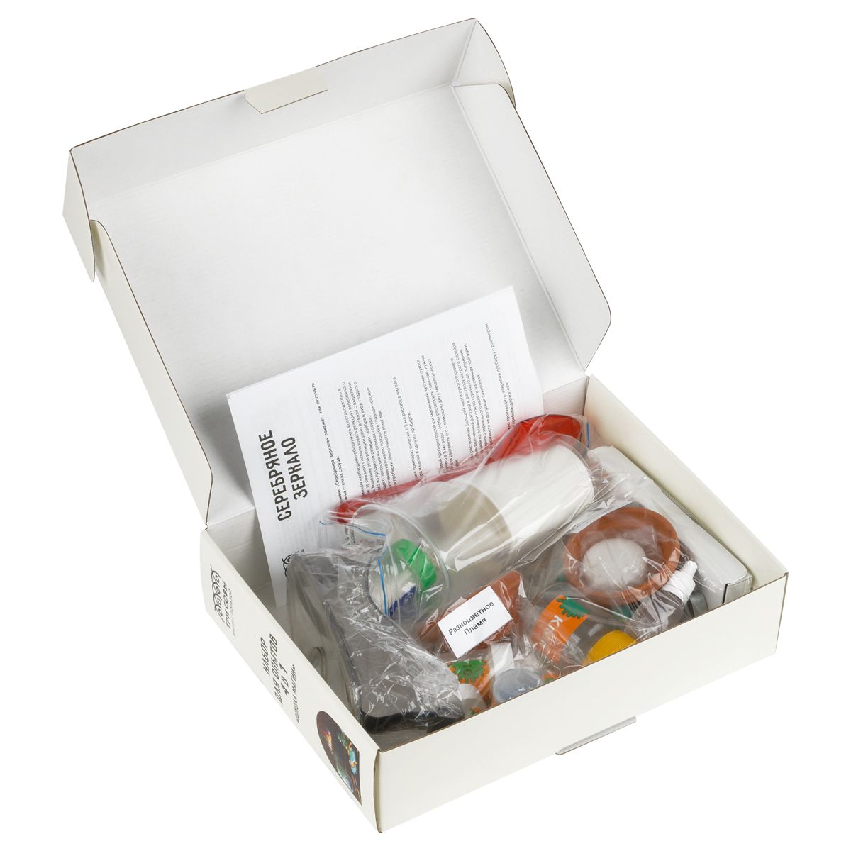 Подготовка опытов не займет много времени и не потребует усилий. Подробная инструкция с указанием техники безопасности и пошаговыми действиями, а также средства индивидуальной защиты (очки, перчатки, маска) входят в состав набора.
