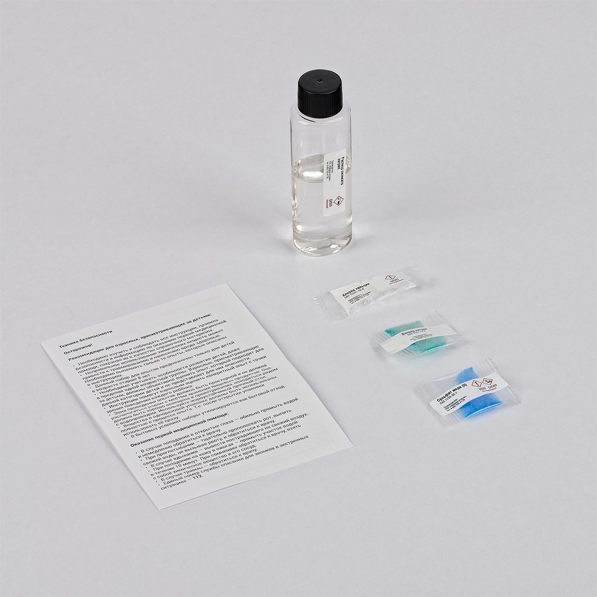 Внимание! Перед проведением опыта ознакомьтесь с инструкцией! Набор подойдёт для детей от 8 лет.