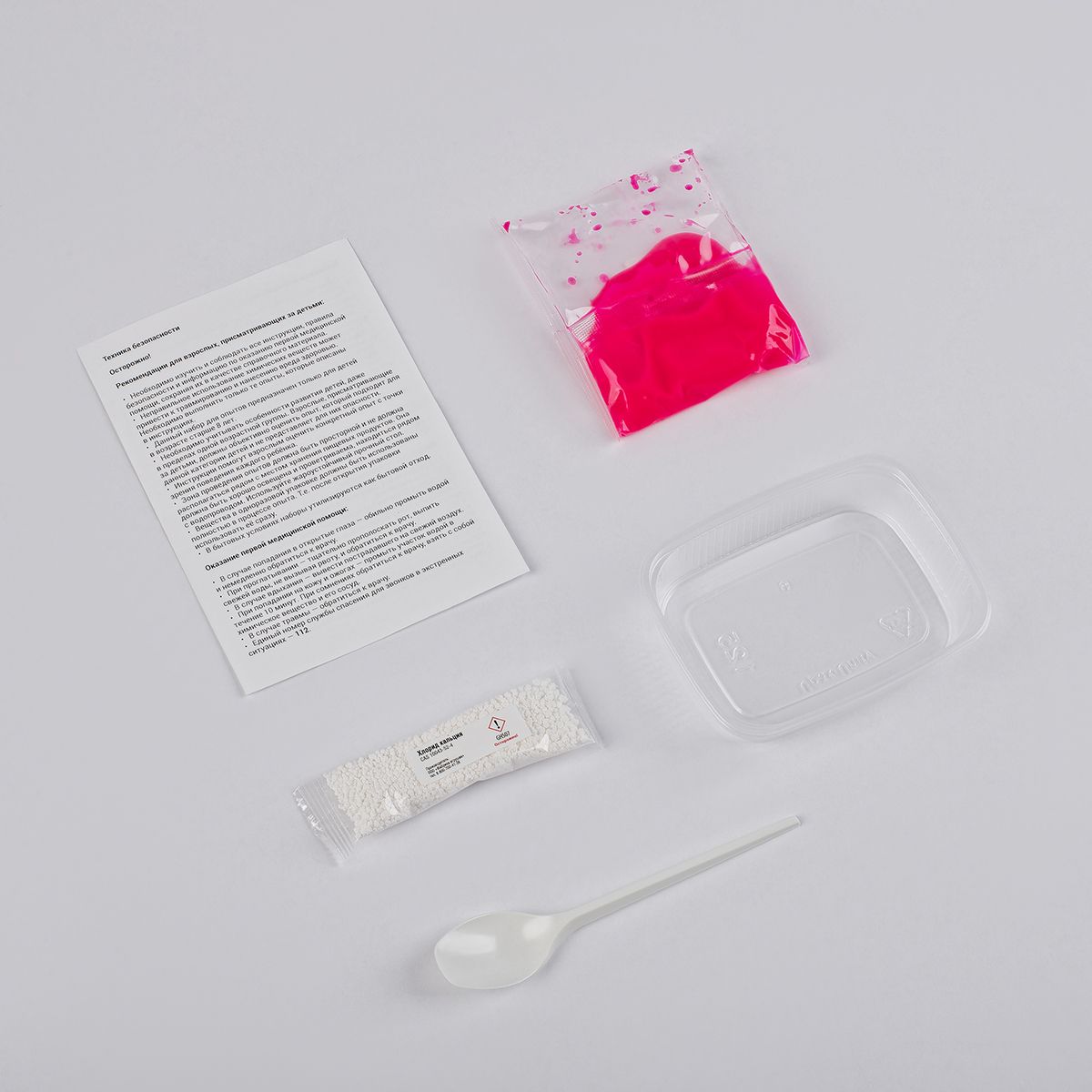 Подготовка опыта «Желейные сферы» не займет много времени и не потребует усилий. В набор входят: вода очищенная, полимерные материалы, кристаллические соли, пищевой краситель, пластик, бумага.