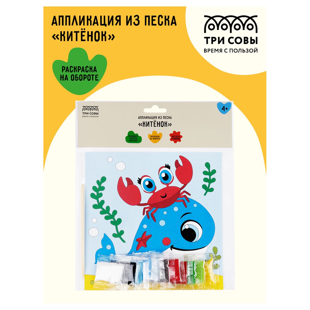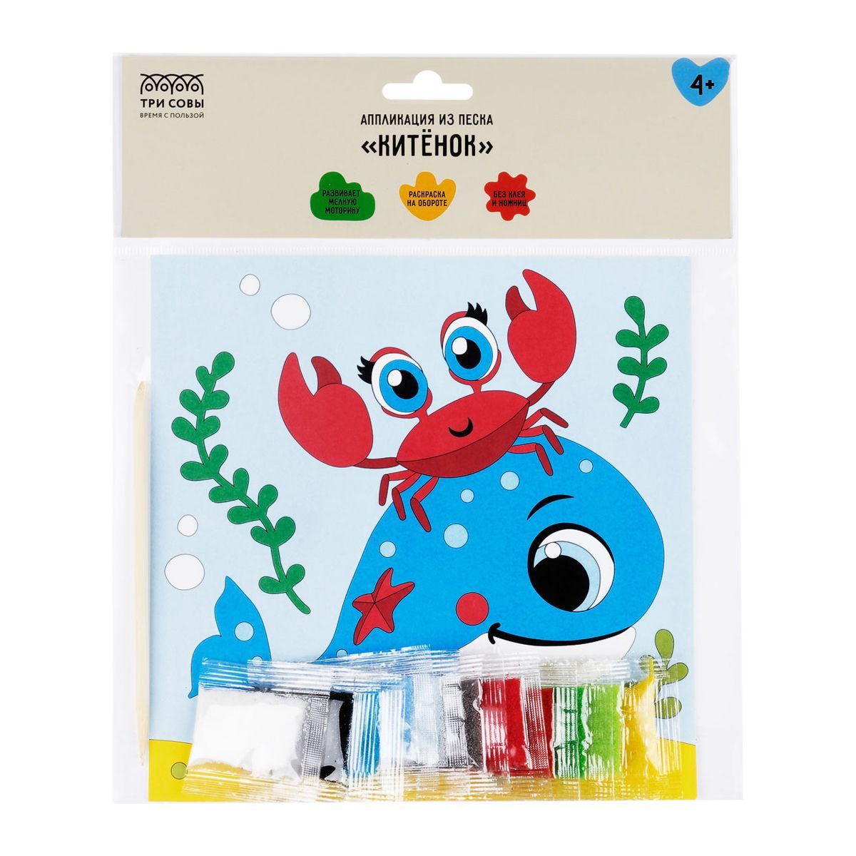Аппликация из песка ТРИ СОВЫ "Китенок", с раскраской, пакет с европодвесом