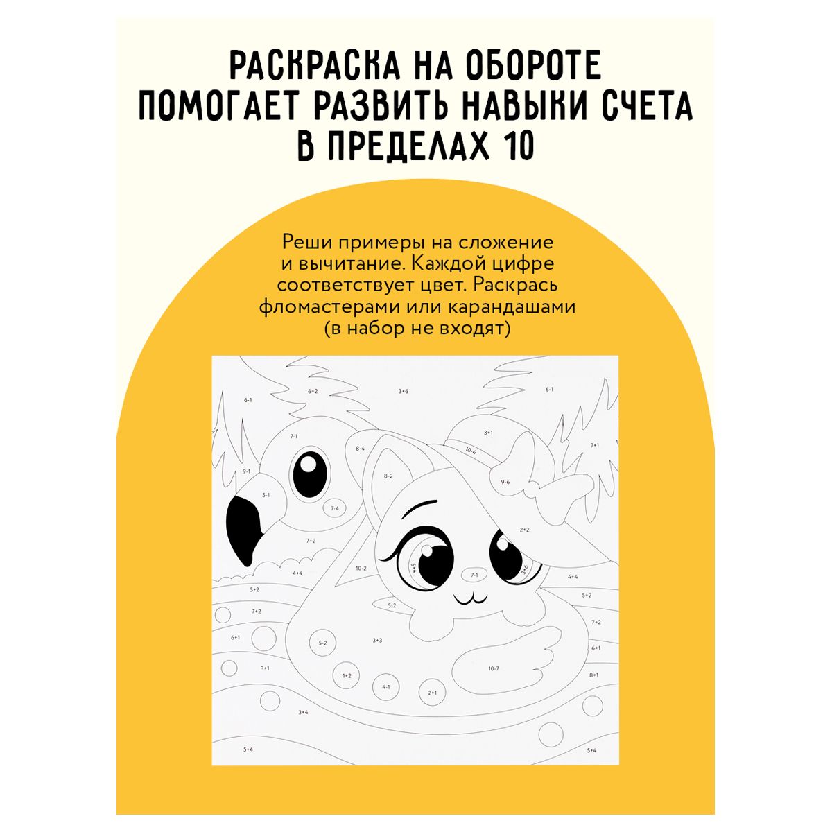 На оборотной стороне аппликации - раскраска по номерам. Реши примеры на сложение и вычитание. Каждой цифре соответствует цвет. Раскрась фломастерами или карандашами.