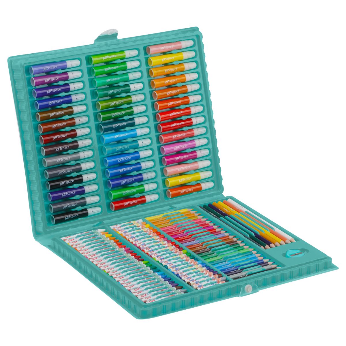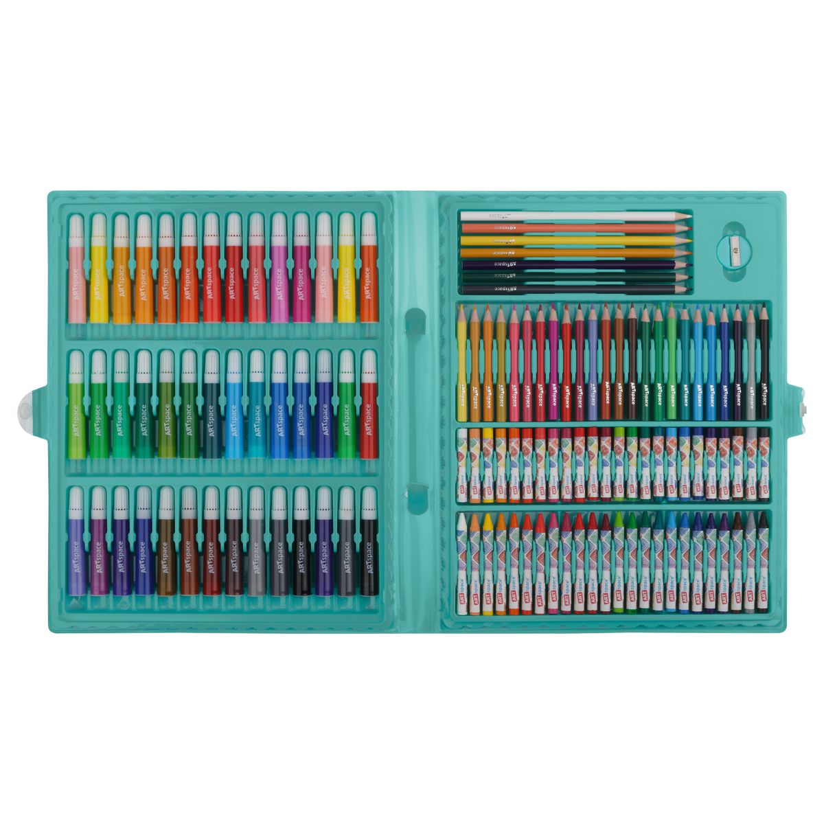 Набор для рисования ArtSpace 122 предмета. 42 шт. фломастеров, 31 шт. цв. карандашей, 1 шт. точилка, 24 шт. пастелей, 24 шт. восковых мелков