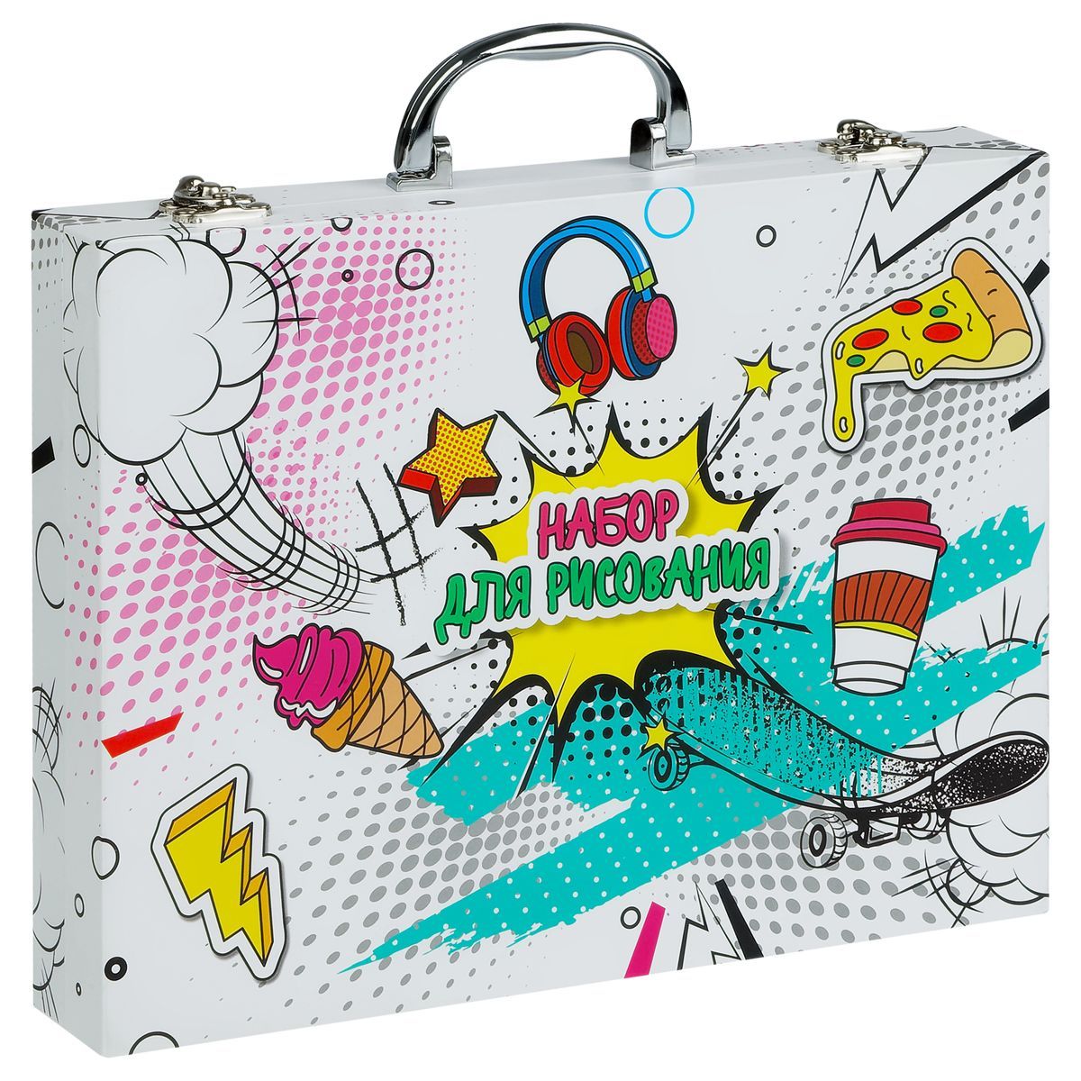 Рисование способствует развитию воображения, образного мышления и творческих способностей у ребёнка. В наборе 58 предметов для рисования позволяют развивать и реализовывать неограниченные фантазии юного художника.