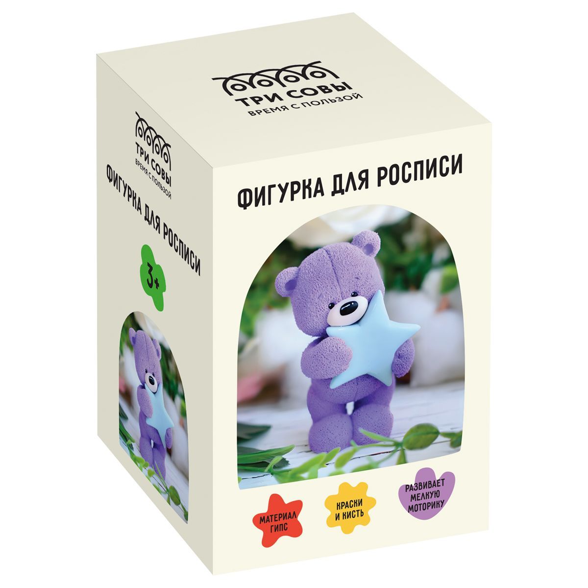 Набор для росписи из гипса ТРИ СОВЫ "Мишка со звездой", высота фигурки 8,5см, с красками и кистью, картонная коробка