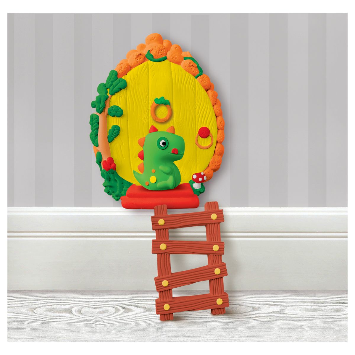 В итоге у вас получится красивая дверка с милым динозавриком, которую можно прикрепить к стене над плинтусом с помощью скотча и приставная лесенка. Теперь у ребенка будет друг и защитник, который всегда рядом!