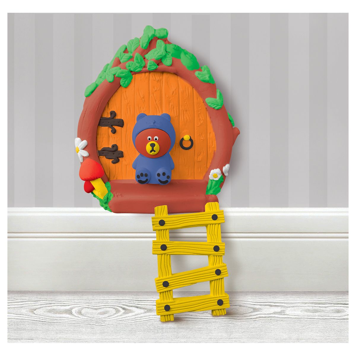 В итоге у вас получится красивая дверка с милым мишкой, которую можно прикрепить к стене над плинтусом с помощью скотча и приставная лесенка. Теперь у ребенка будет друг и защитник, который всегда рядом!