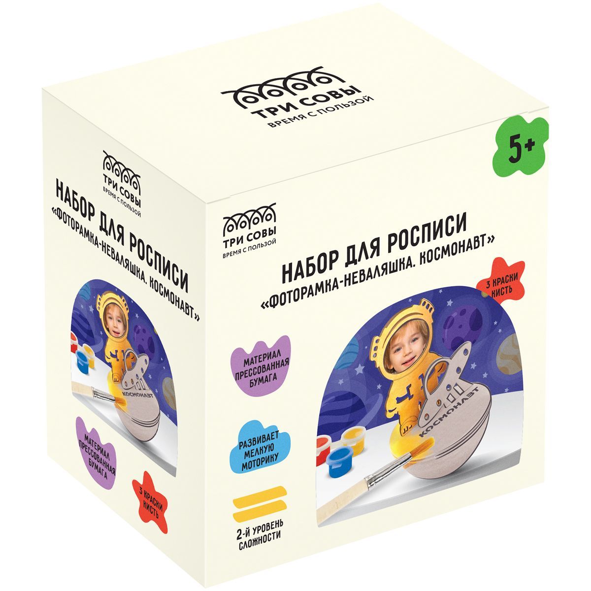 Набор для росписи ТРИ СОВЫ "Фоторамка-Неваляшка. Космонавт", с красками и кистью