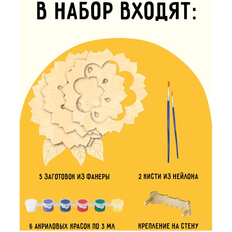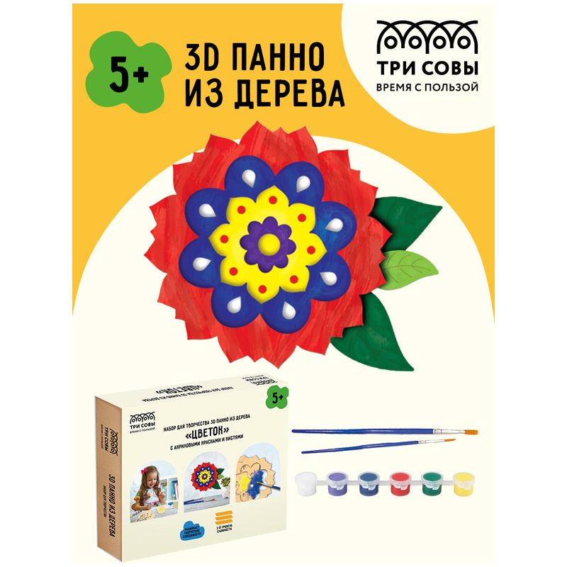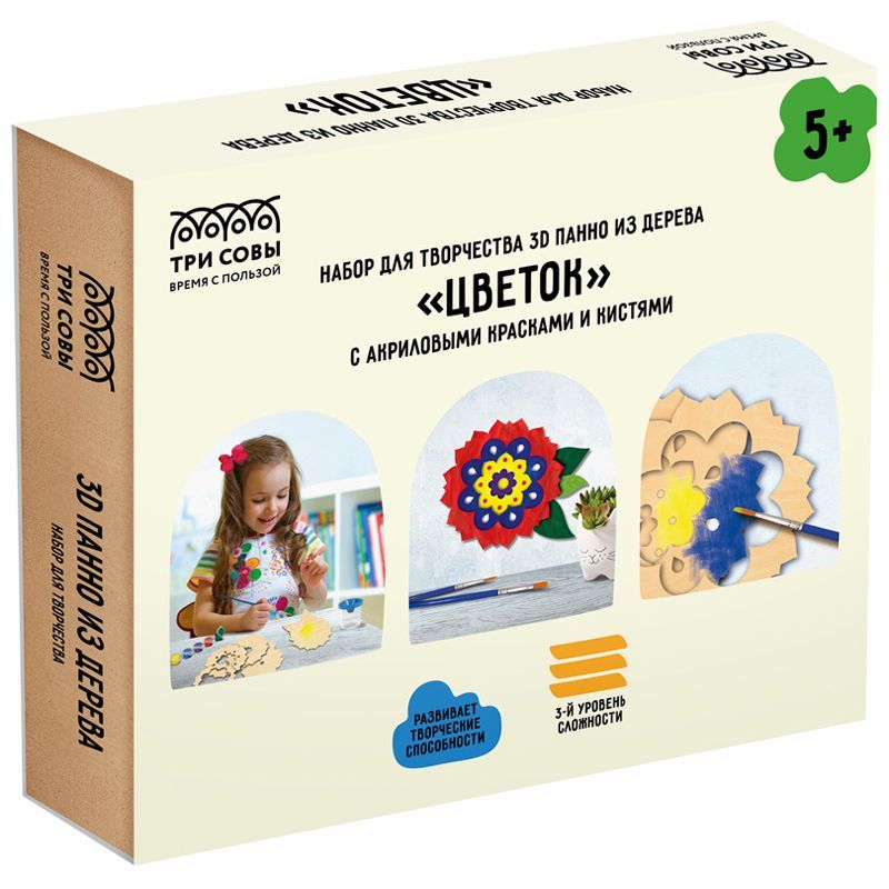 Набор для творчества 3D панно из дерева ТРИ СОВЫ "Цветок", с акриловыми красками и кистями