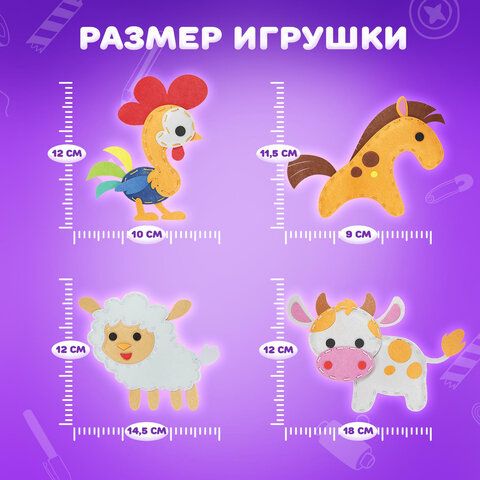 Набор для шитья игрушки из фетра "Животные фермы", 4 игрушки, ЮНЛАНДИЯ, 664736