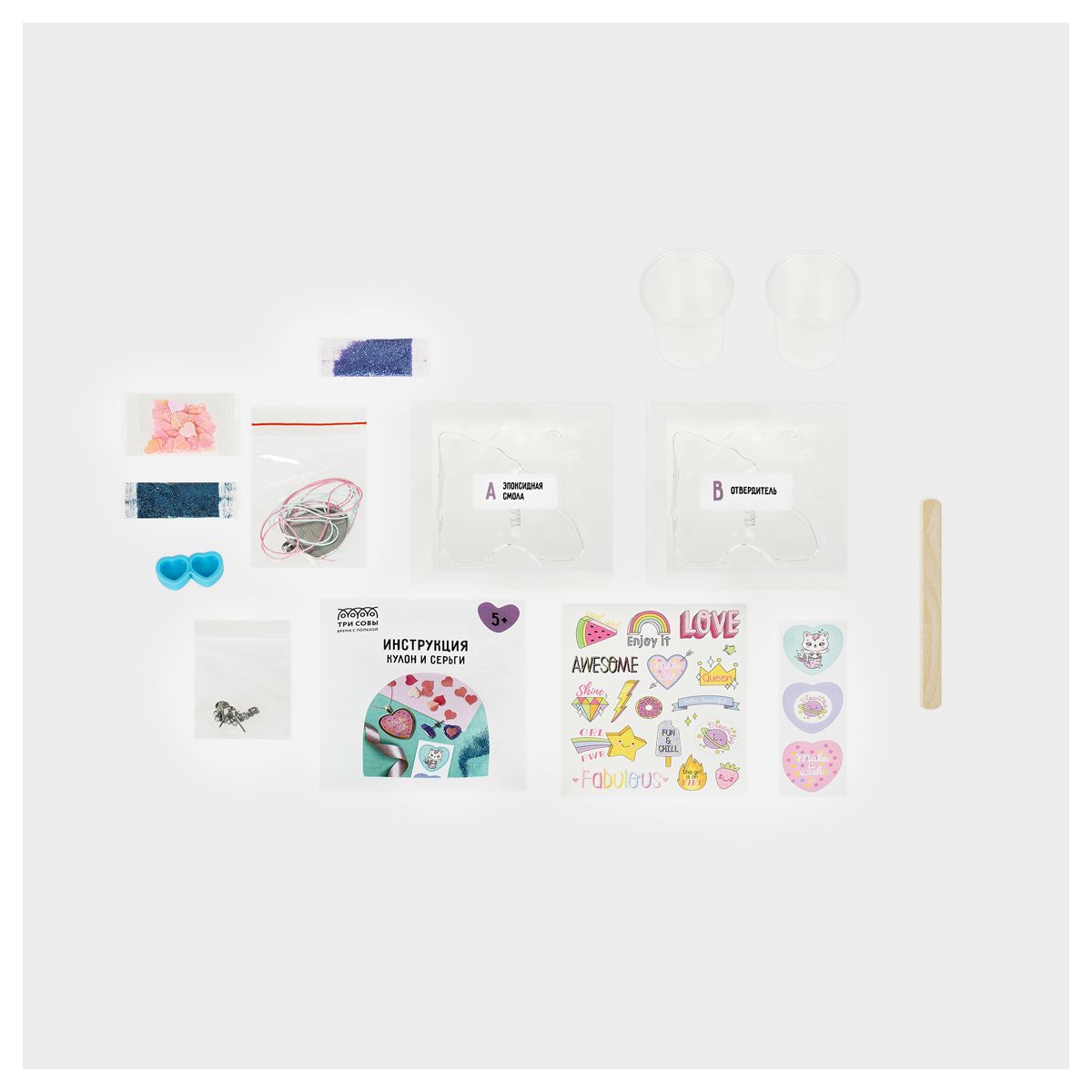 Набор для создания украшений из эпоксидной смолы ТРИ СОВЫ "Покоряй сердца", кулон и серьги, картонная коробка