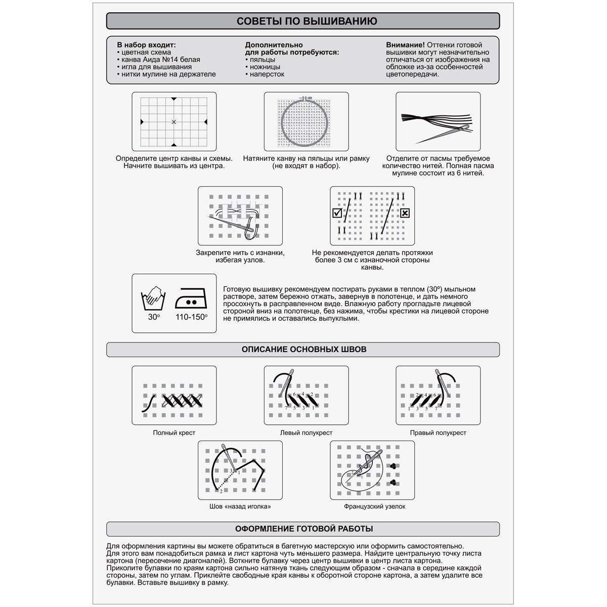 • основа для вышивания белого цвета – канва Аида 14 каунта (без нанесённого рисунка),